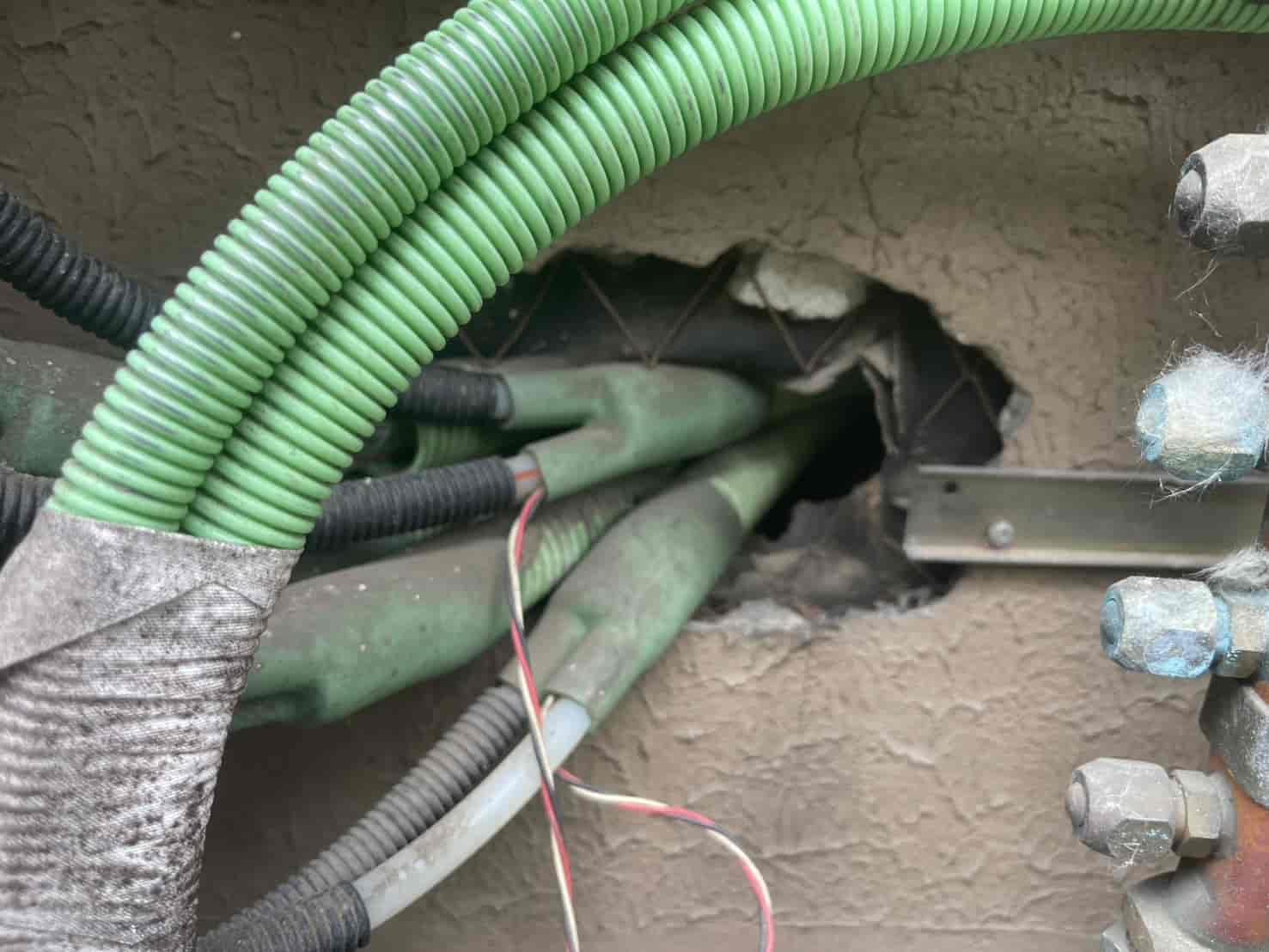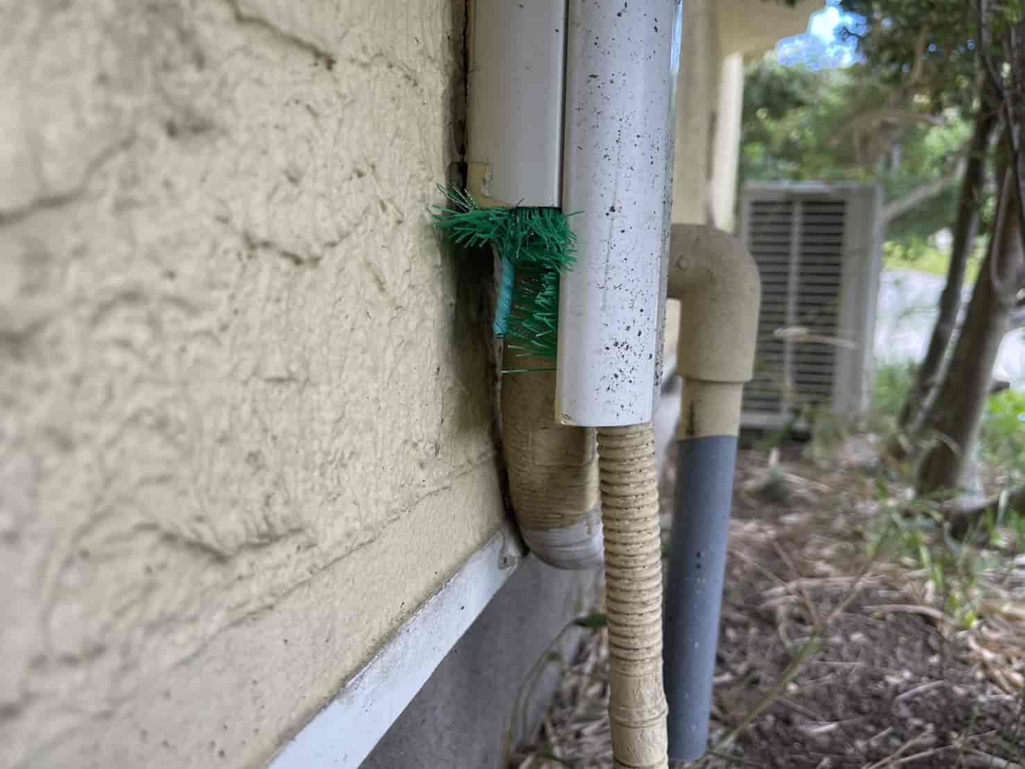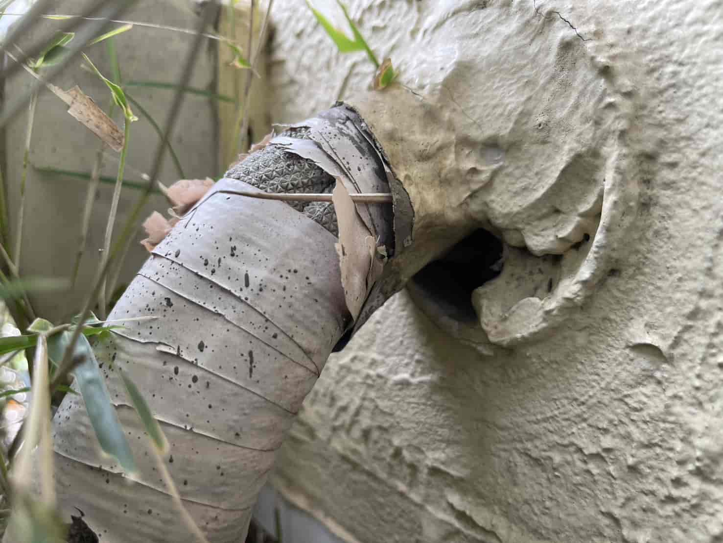 ・屋外温水器の配管周りに隙間