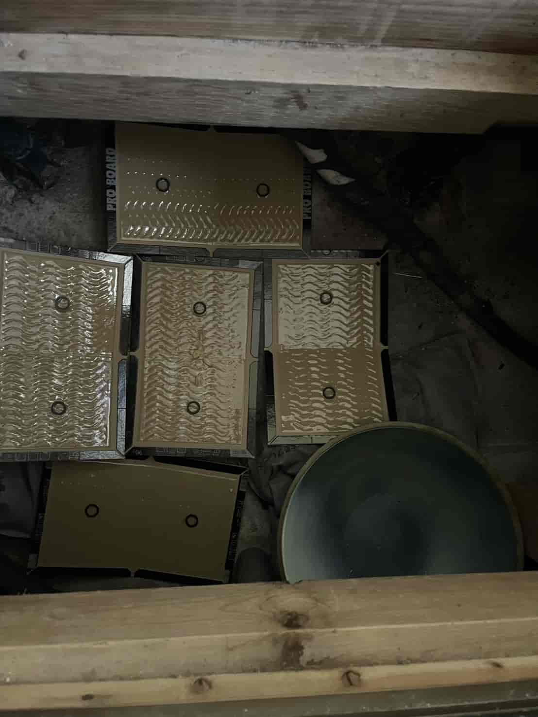 燻煙後は、天井裏に設置した粘着シートを複数箇所に配置し、粘着シートは安全で即効性が高く、薬剤を使いたくない場所にも適しています。