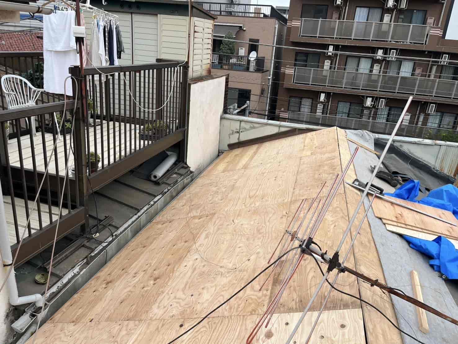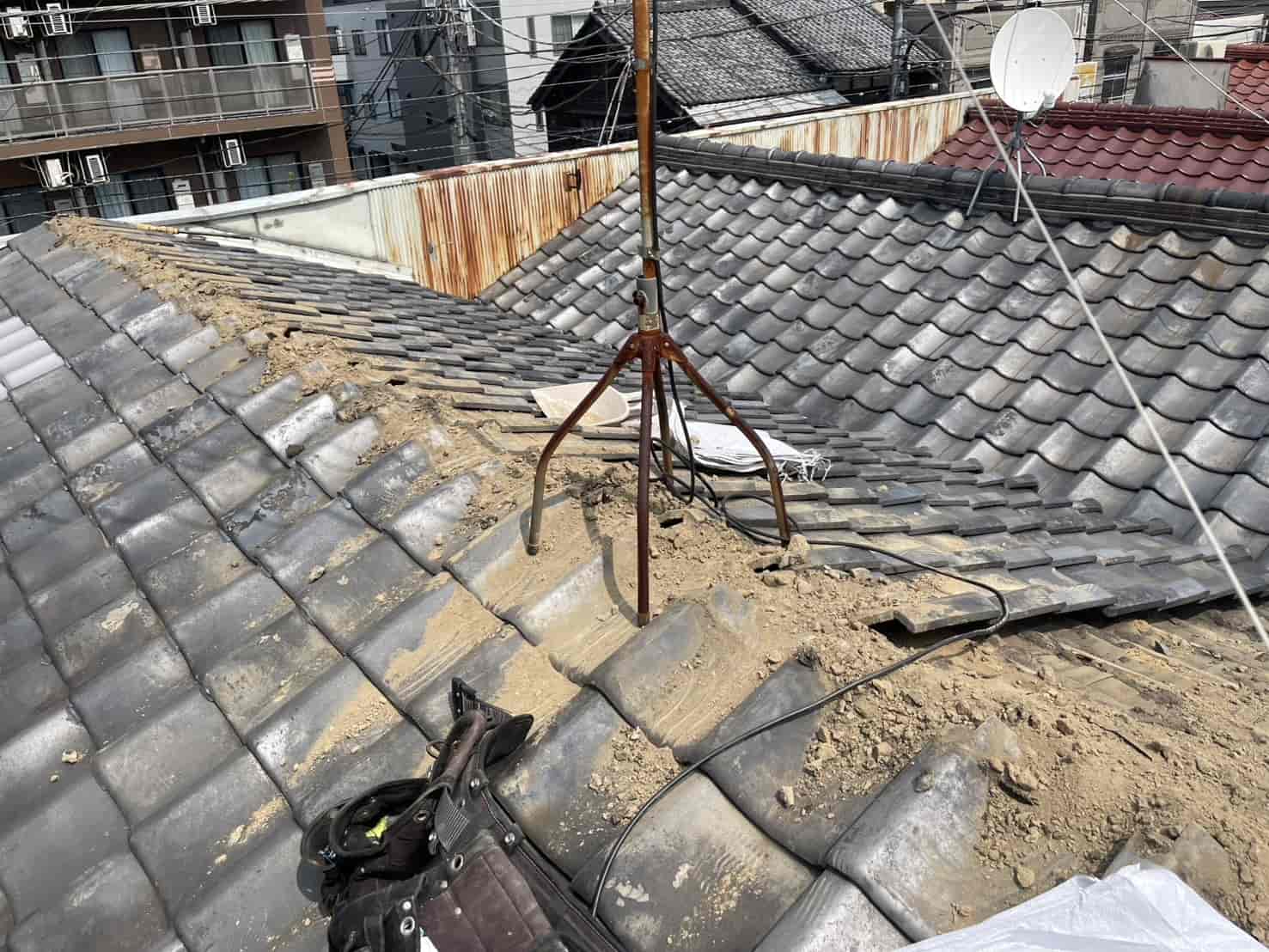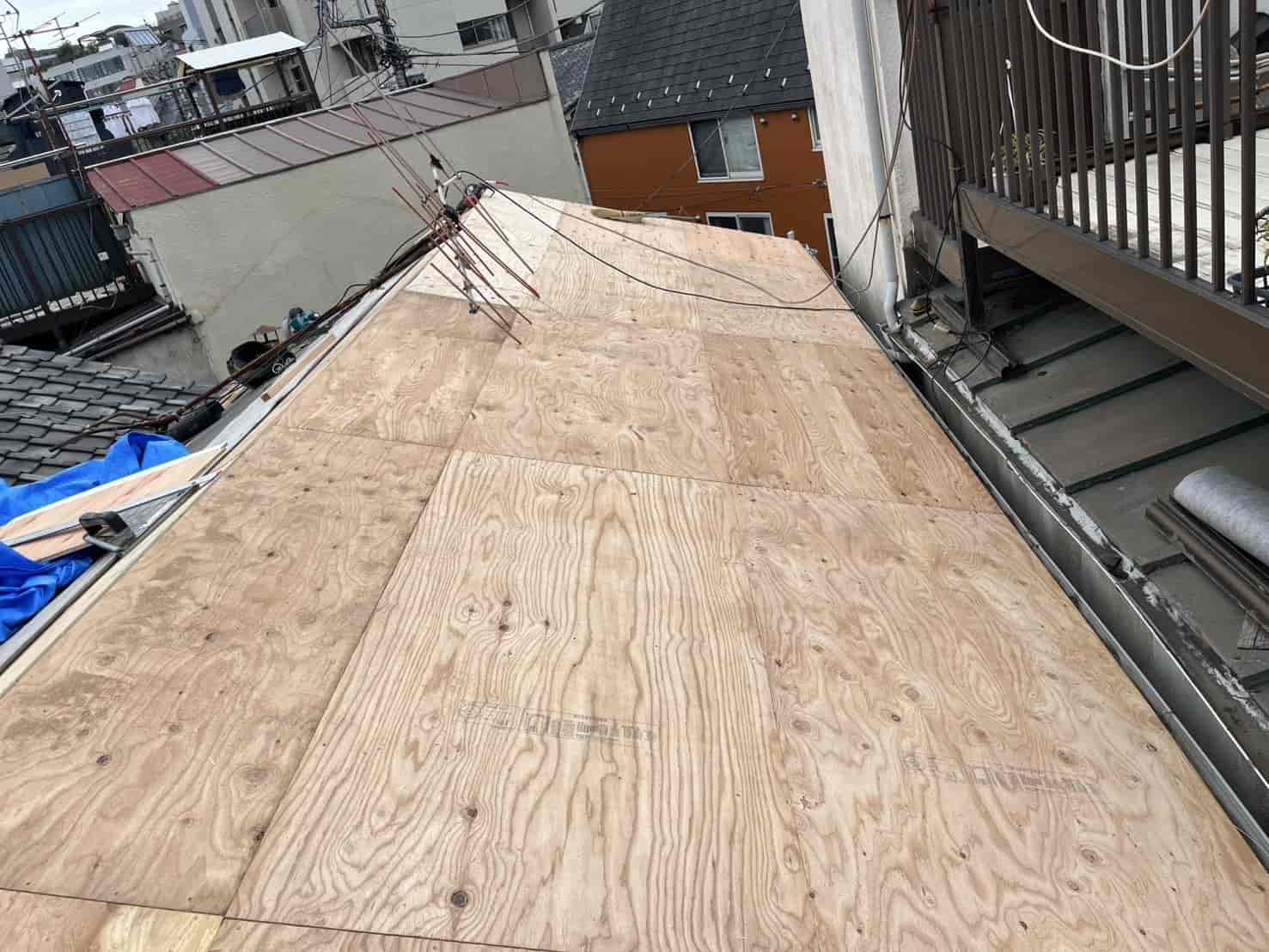 まずは瓦と古くなった下葺き材を丁寧に撤去します。長年の雨水で一部の野地板が傷んでいたため、腐食部分を交換して下地を補強しました。