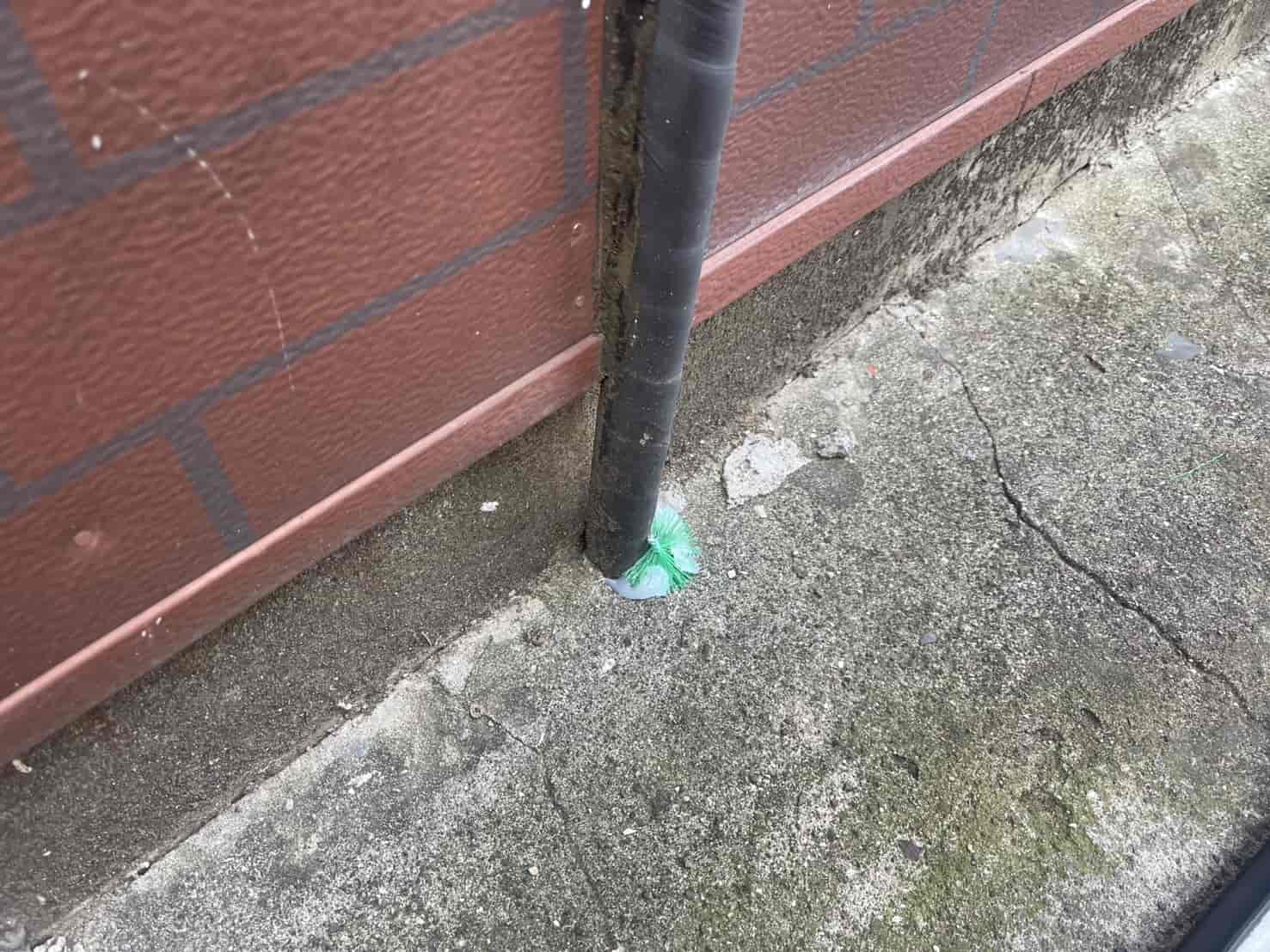 建物周囲でネズミが掘っていた穴については、一度土を掘り起こして内部を確認し、トンネル状になっている部分には防鼠モルタルを充填。その後、表面を転圧して再度掘り返されにくい状態に仕上げました。