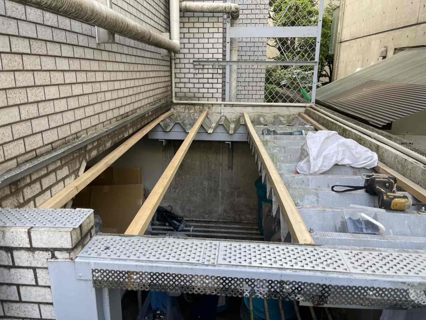②新たに下地を組み、波板で屋根を作成