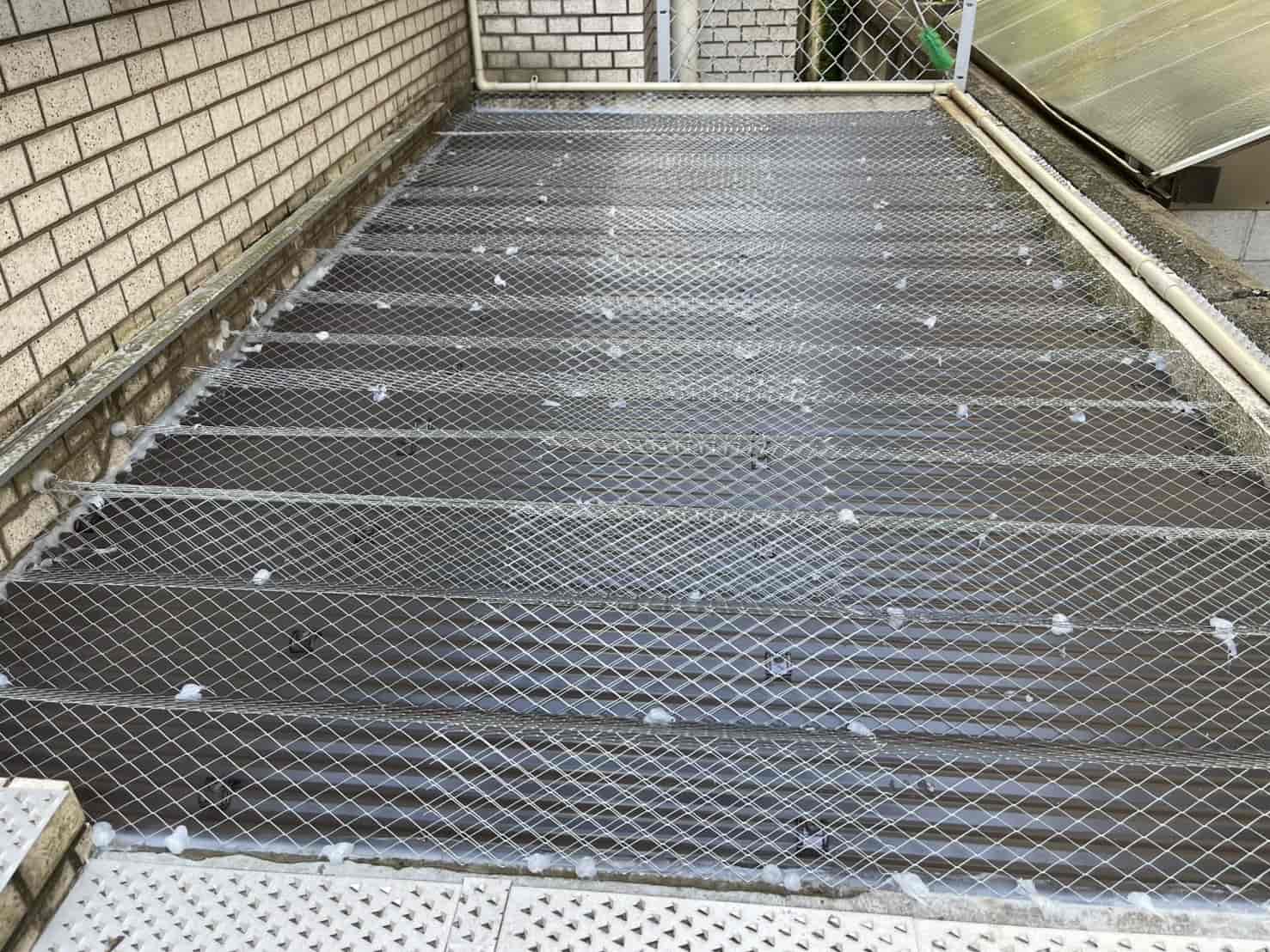 渋谷区のマンションで行った今回の施工では、既存の不十分な対策を撤去し、下地から組み直して波板屋根と防鼠金網を設置、さらに隙間をネットとコーキングで完全に封鎖することで、ネズミの侵入を防止しました。
