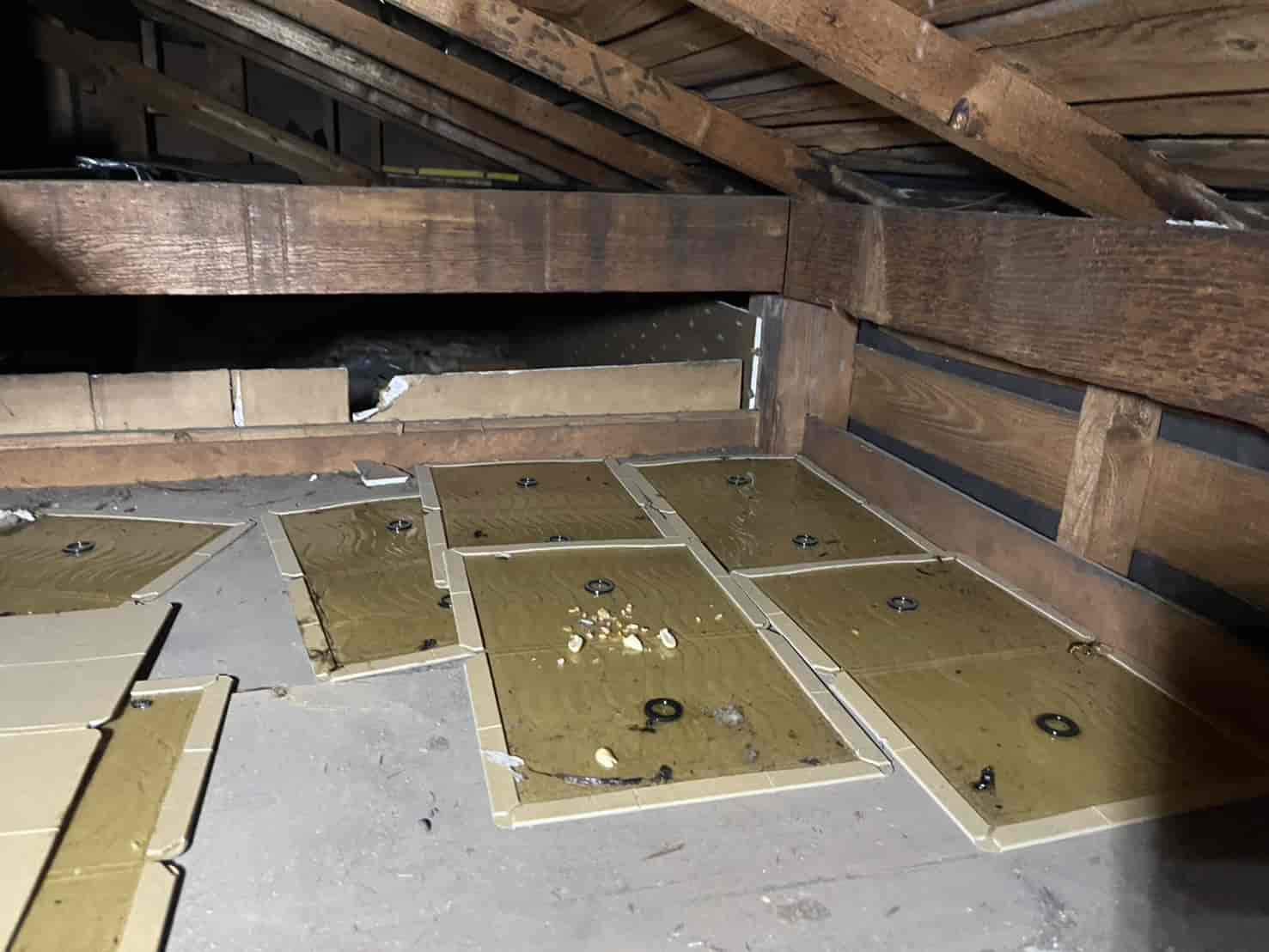これにより、建物内部のネズミを一度追い出し、粘着シートと殺鼠剤で捕獲・駆除を進める形を整えました。