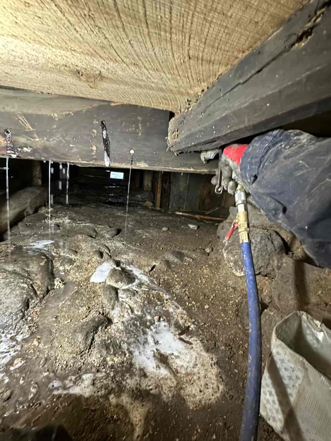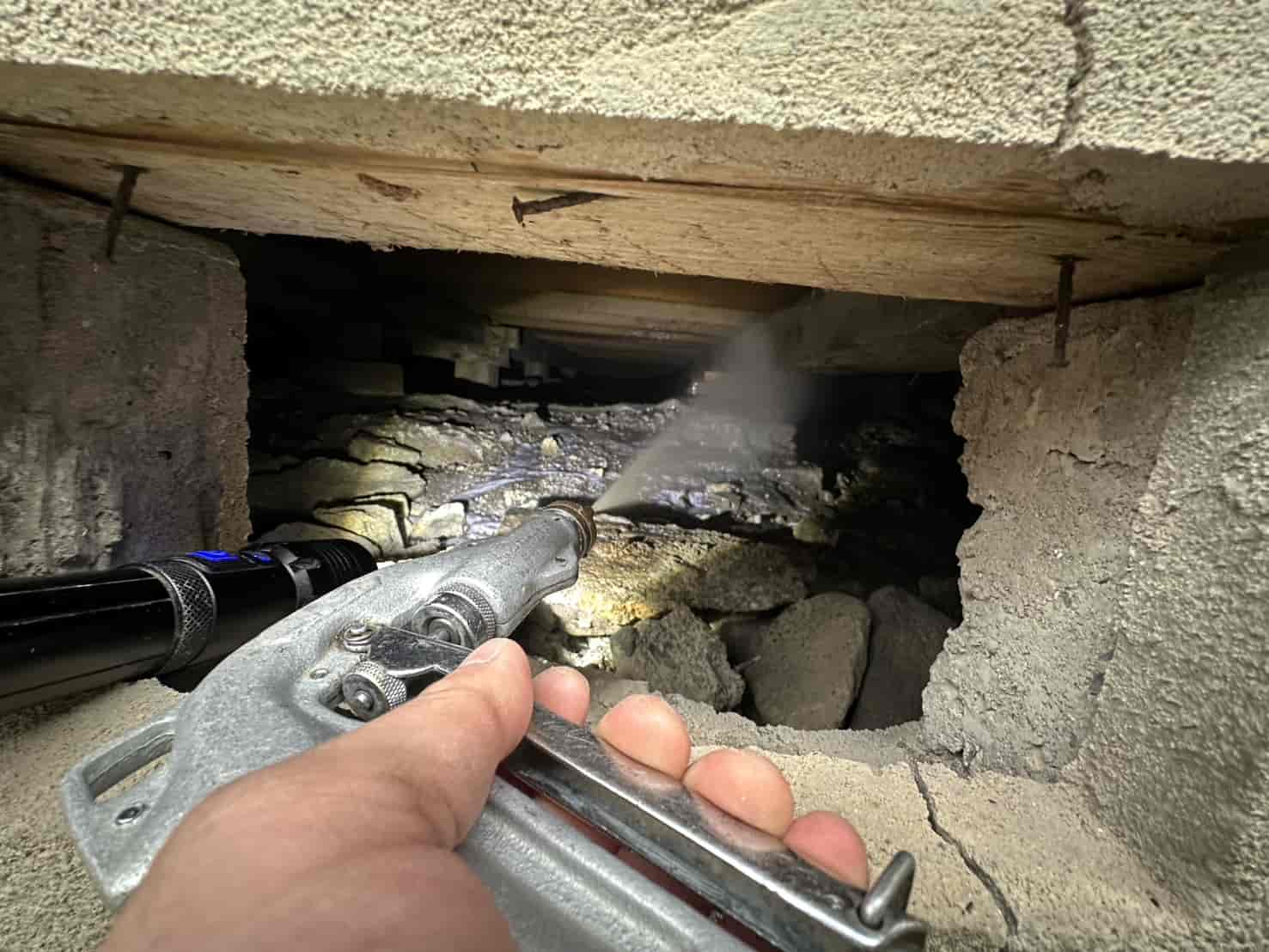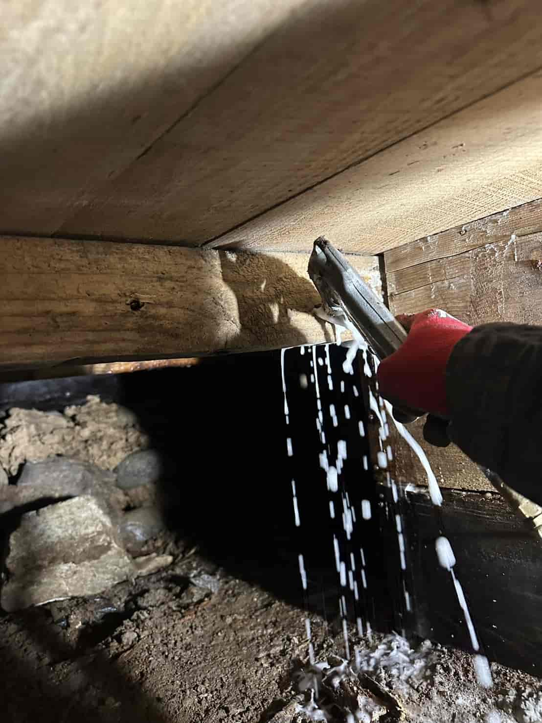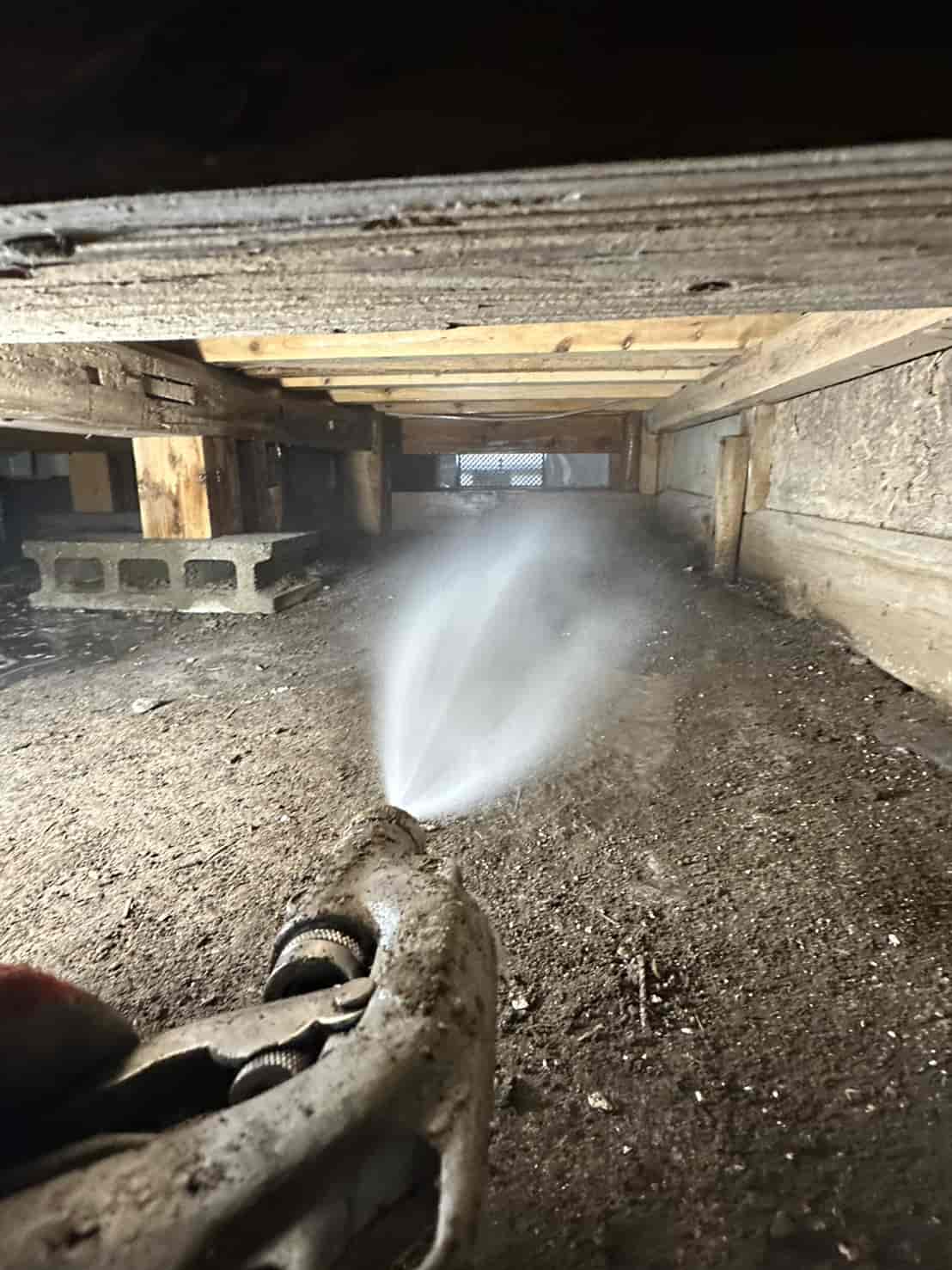 限られたご予算の中でも、最低限必要となる床下全体への散布処理は実施しました。土壌面に防蟻バリアを形成し、外部からの新たな侵入を抑制します。全面フル施工ではありませんが、被害箇所を重点的に押さえつつ、再侵入リスクを下げる処置をバランス良く行いました。
