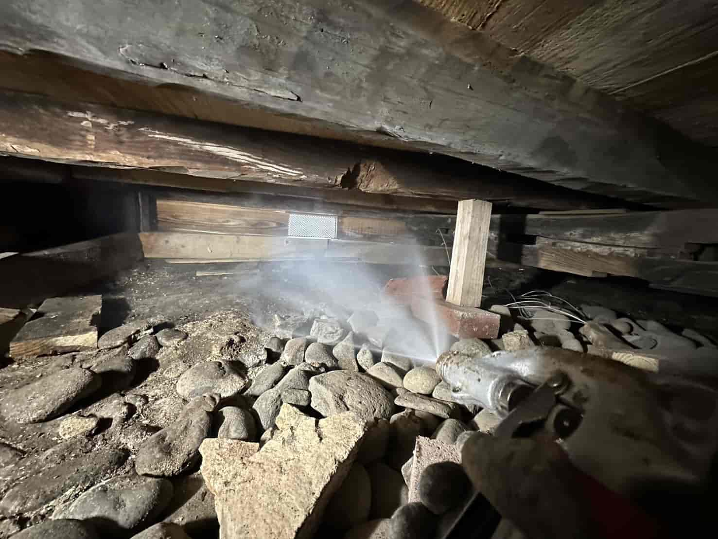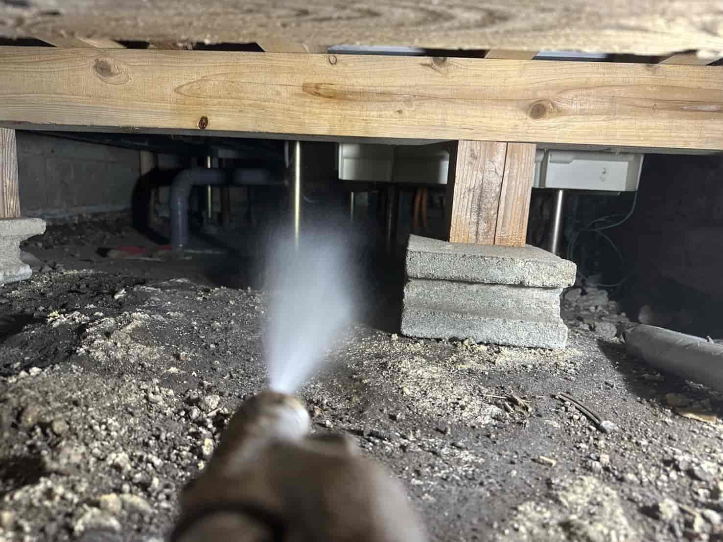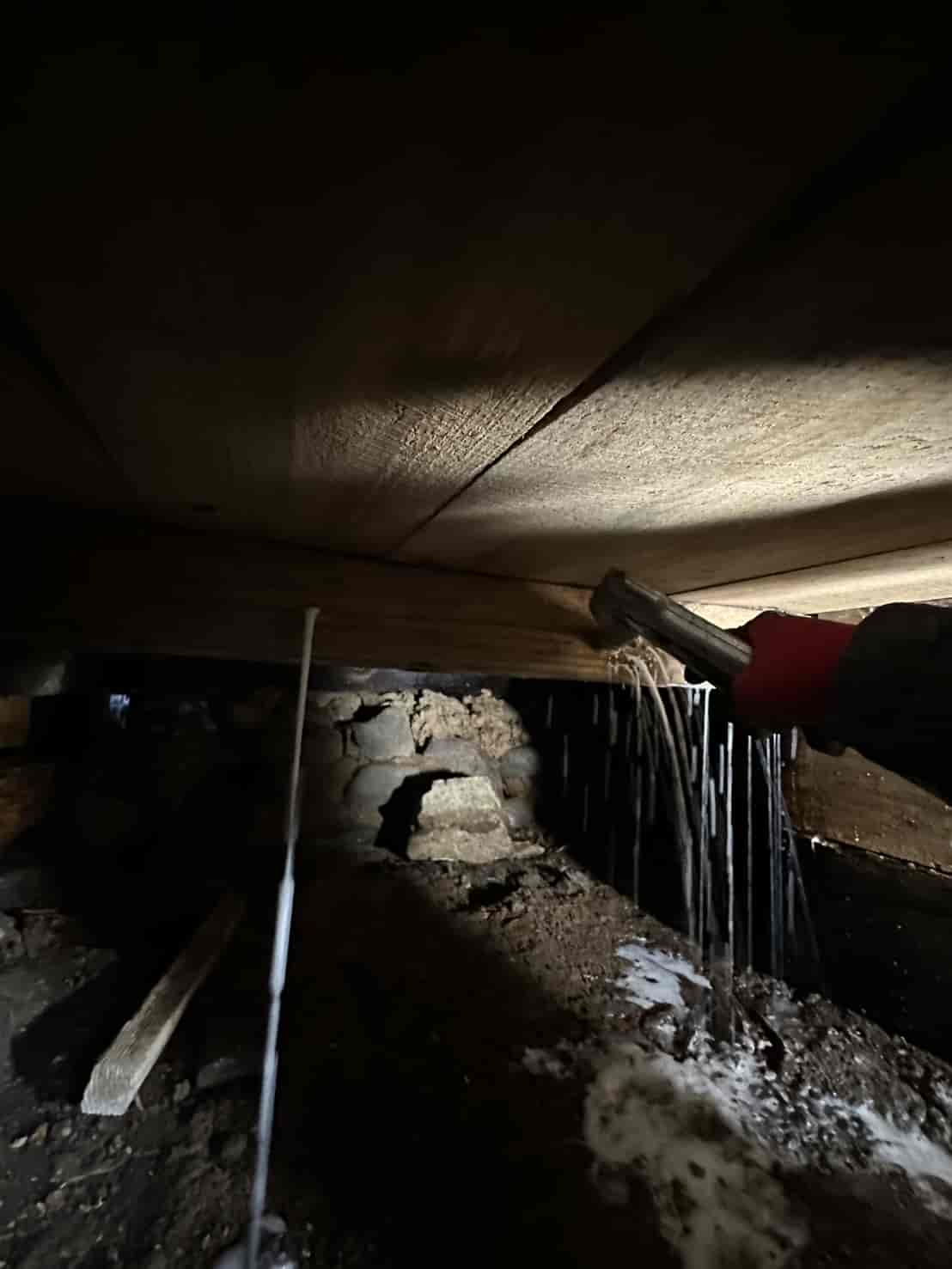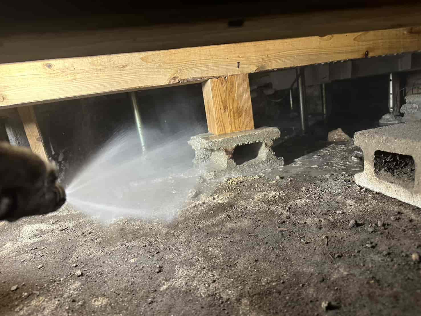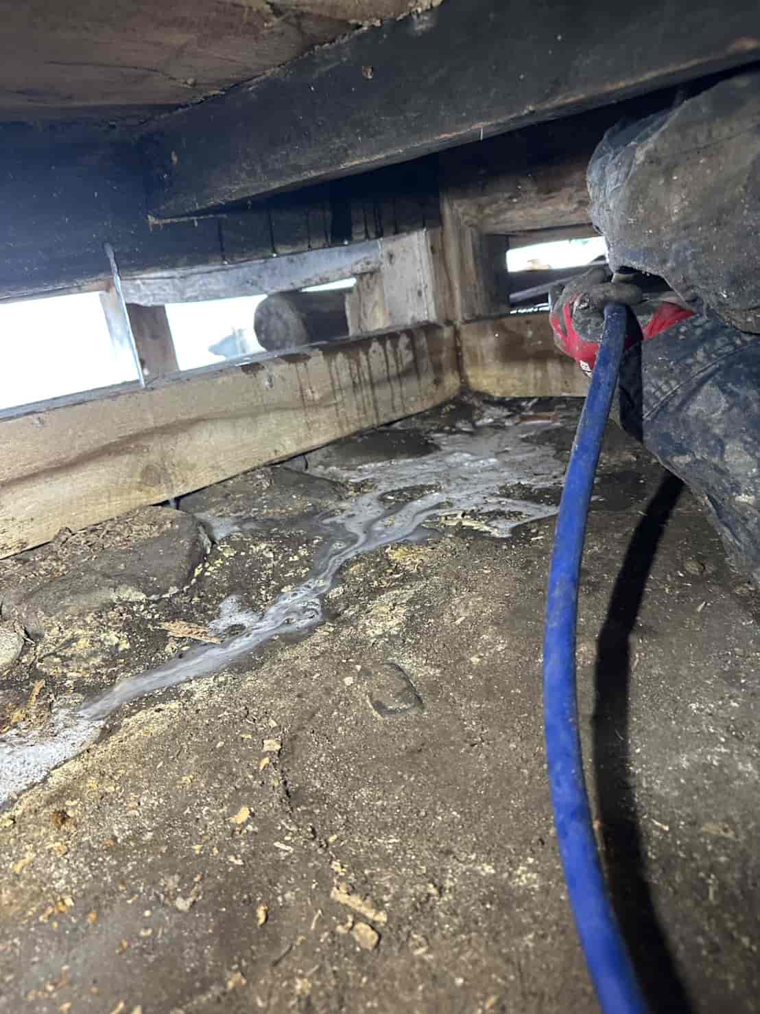 限られたご予算の中でも、最低限必要となる床下全体への散布処理は実施しました。土壌面に防蟻バリアを形成し、外部からの新たな侵入を抑制します。全面フル施工ではありませんが、被害箇所を重点的に押さえつつ、再侵入リスクを下げる処置をバランス良く行いました。