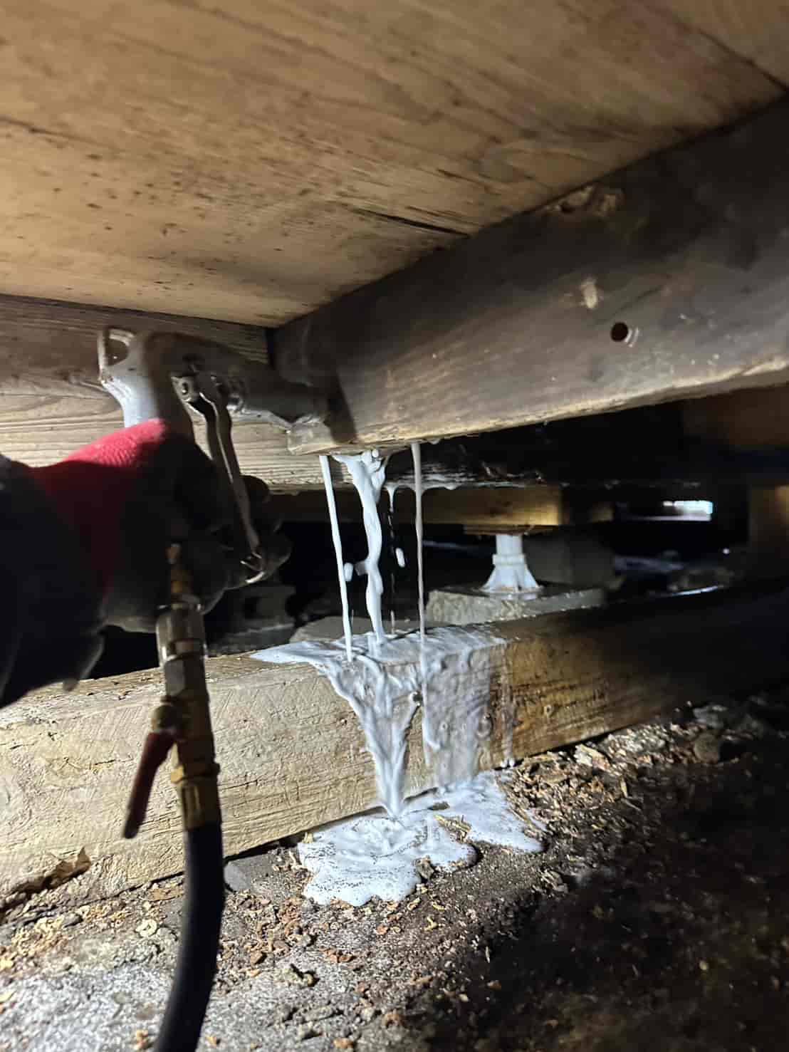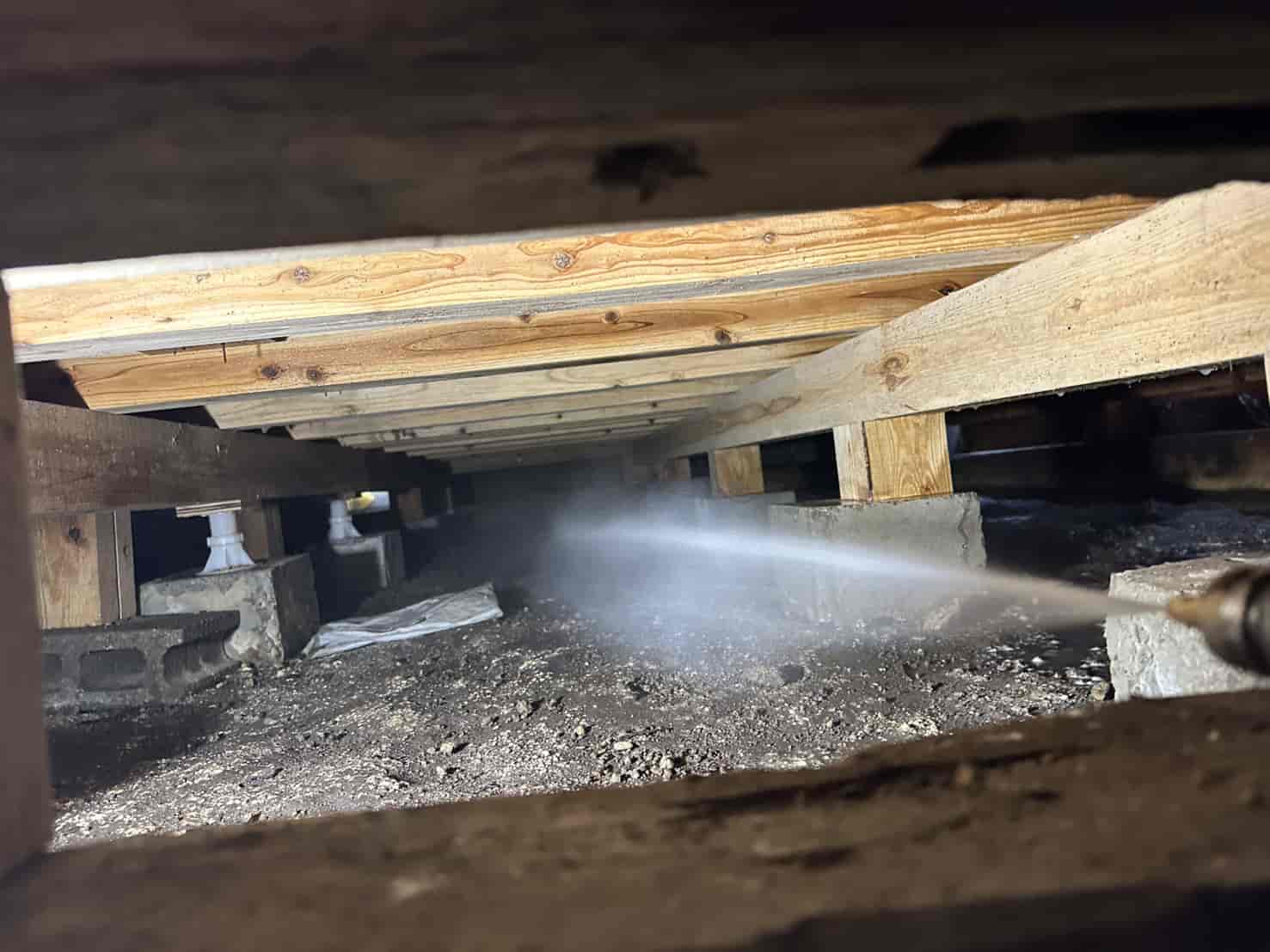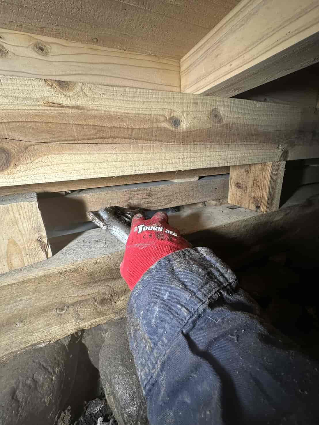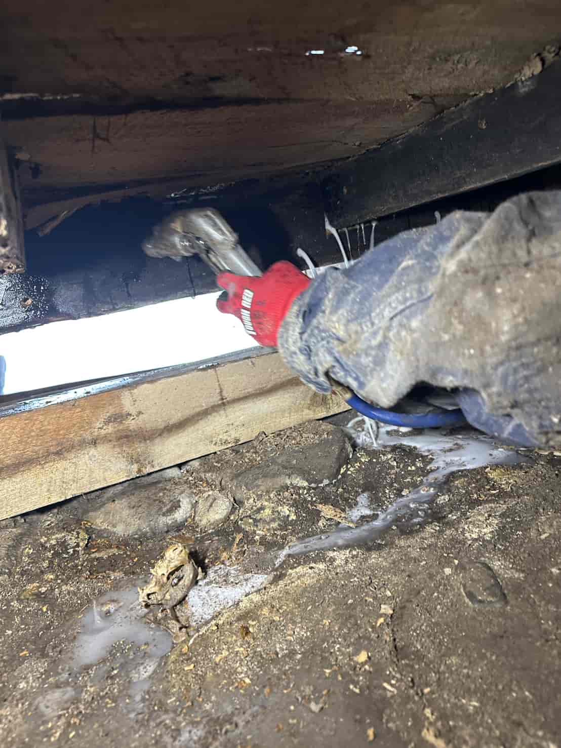 限られたご予算の中でも、最低限必要となる床下全体への散布処理は実施しました。土壌面に防蟻バリアを形成し、外部からの新たな侵入を抑制します。全面フル施工ではありませんが、被害箇所を重点的に押さえつつ、再侵入リスクを下げる処置をバランス良く行いました。