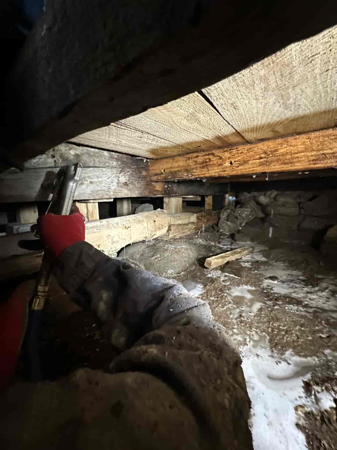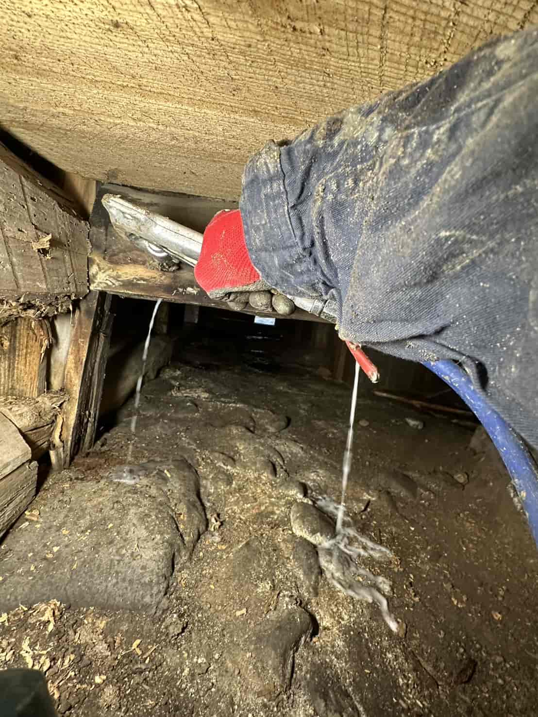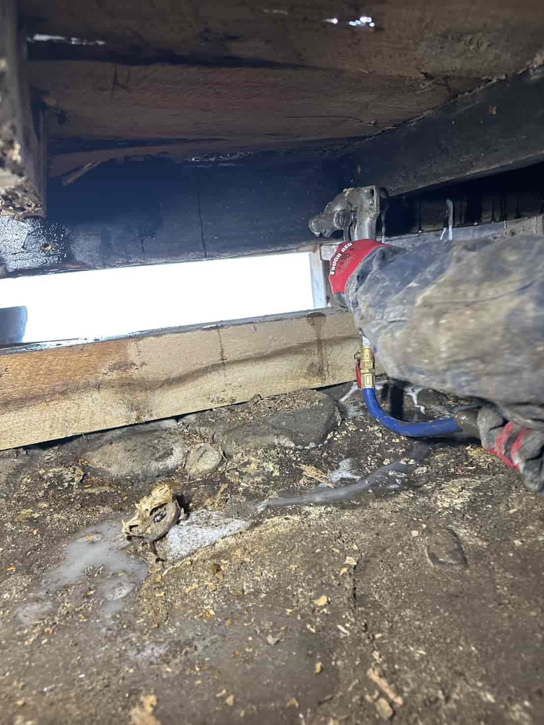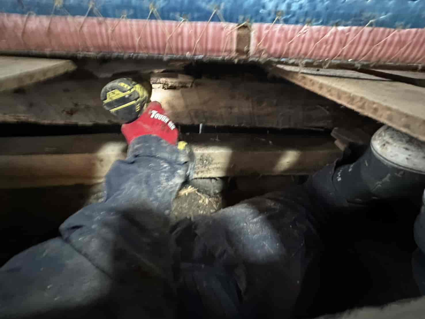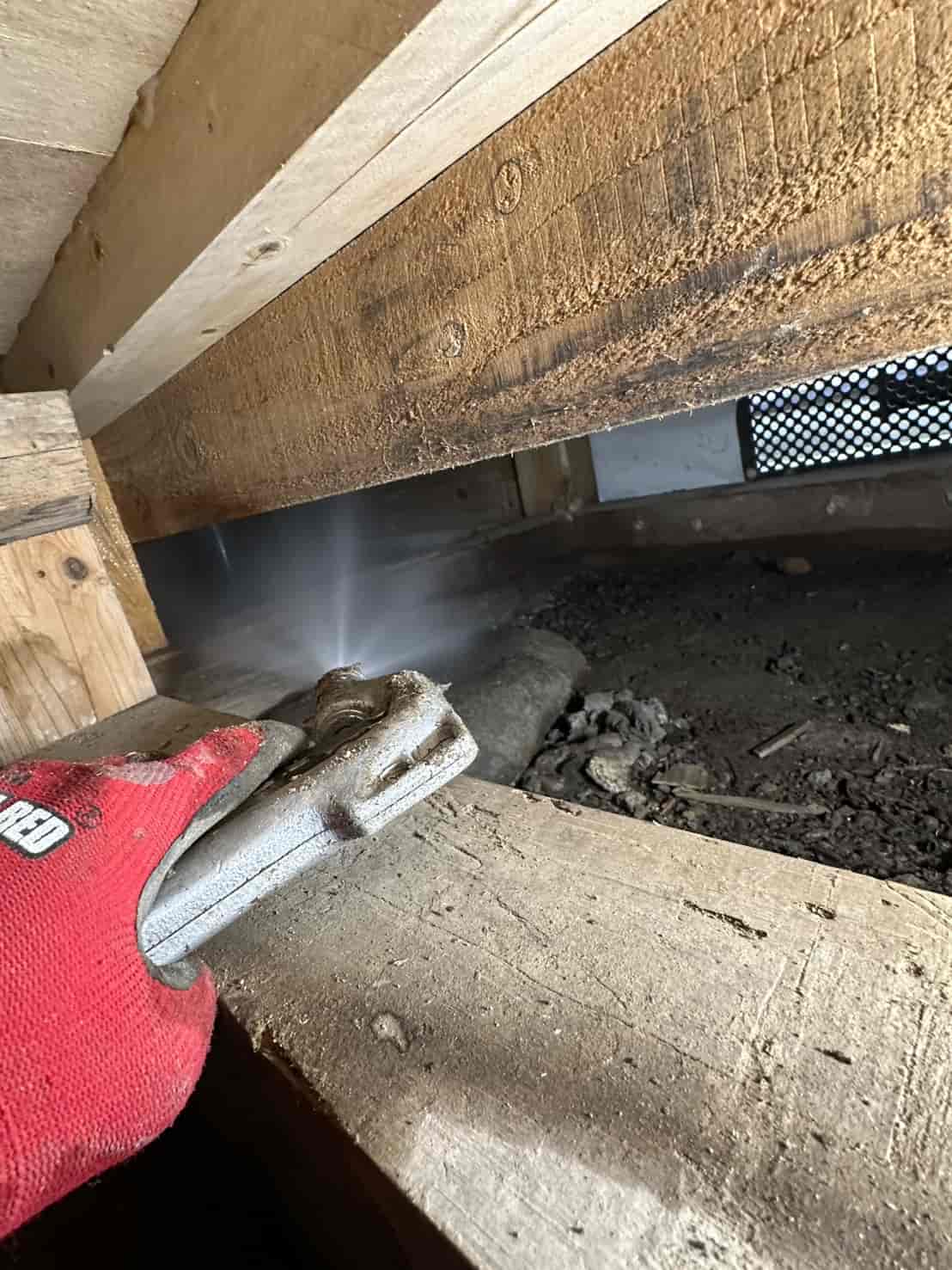 限られたご予算の中でも、最低限必要となる床下全体への散布処理は実施しました。土壌面に防蟻バリアを形成し、外部からの新たな侵入を抑制します。全面フル施工ではありませんが、被害箇所を重点的に押さえつつ、再侵入リスクを下げる処置をバランス良く行いました。