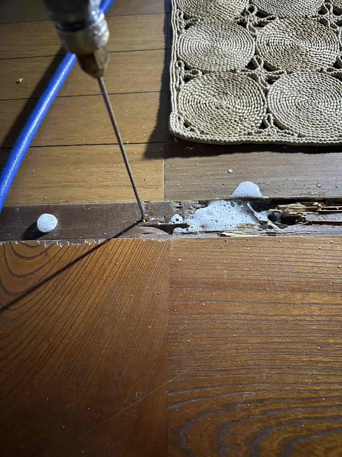 「数年前から分かっていた」とのことでしたが、実際に被害は着実に進行していました。白アリは静かに、そして確実に木材内部を食害します。見えていない部分で構造材が弱くなれば、耐震性にも影響が出る可能性があります。