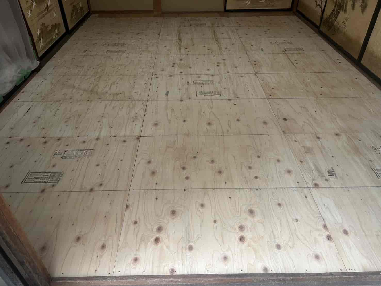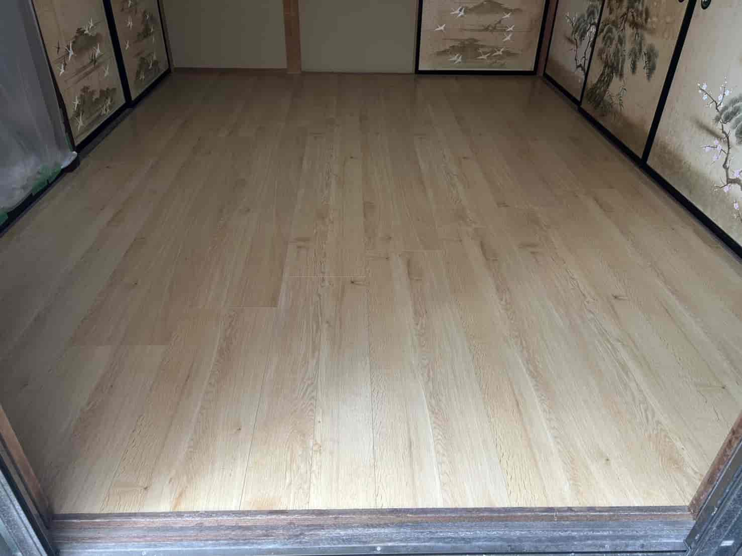 駆除後、お客様のご要望で6畳の和室をフローリングへリフォーム。畳を撤去し、傷んでいた下地木材を新しい構造材に入れ替えたうえで、断熱材とフローリング材を施工しました。見た目も明るくなり、床の強度・清潔さ・メンテナンス性が大幅に向上しました。