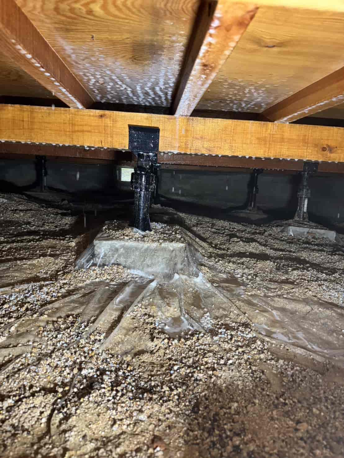 駆除工事では、床下全体に薬剤を散布し、木材内部までしっかり浸透させて巣の根絶を行いました。薬剤には防カビ・防湿効果もあり、今後の再発防止にも有効です。