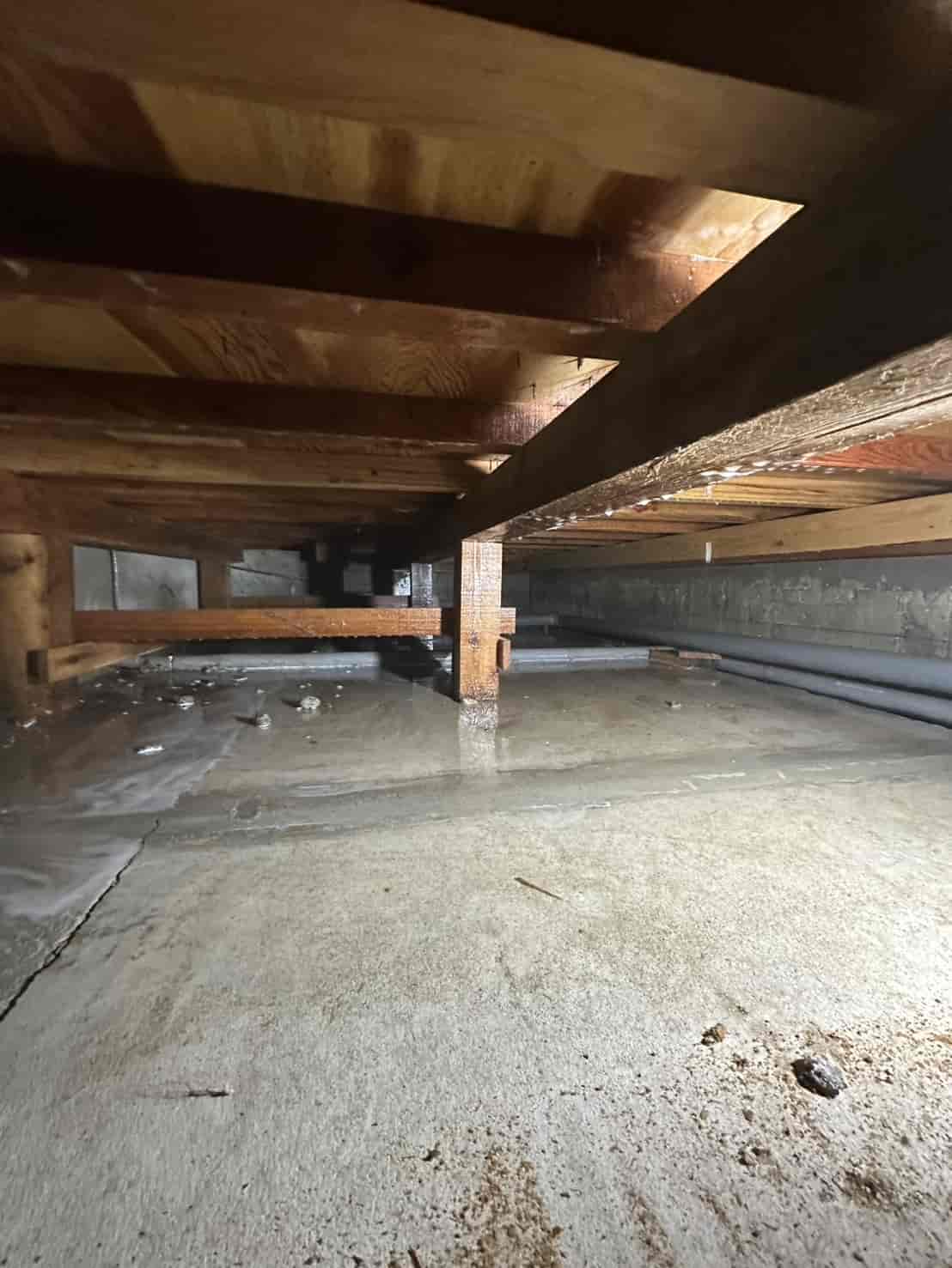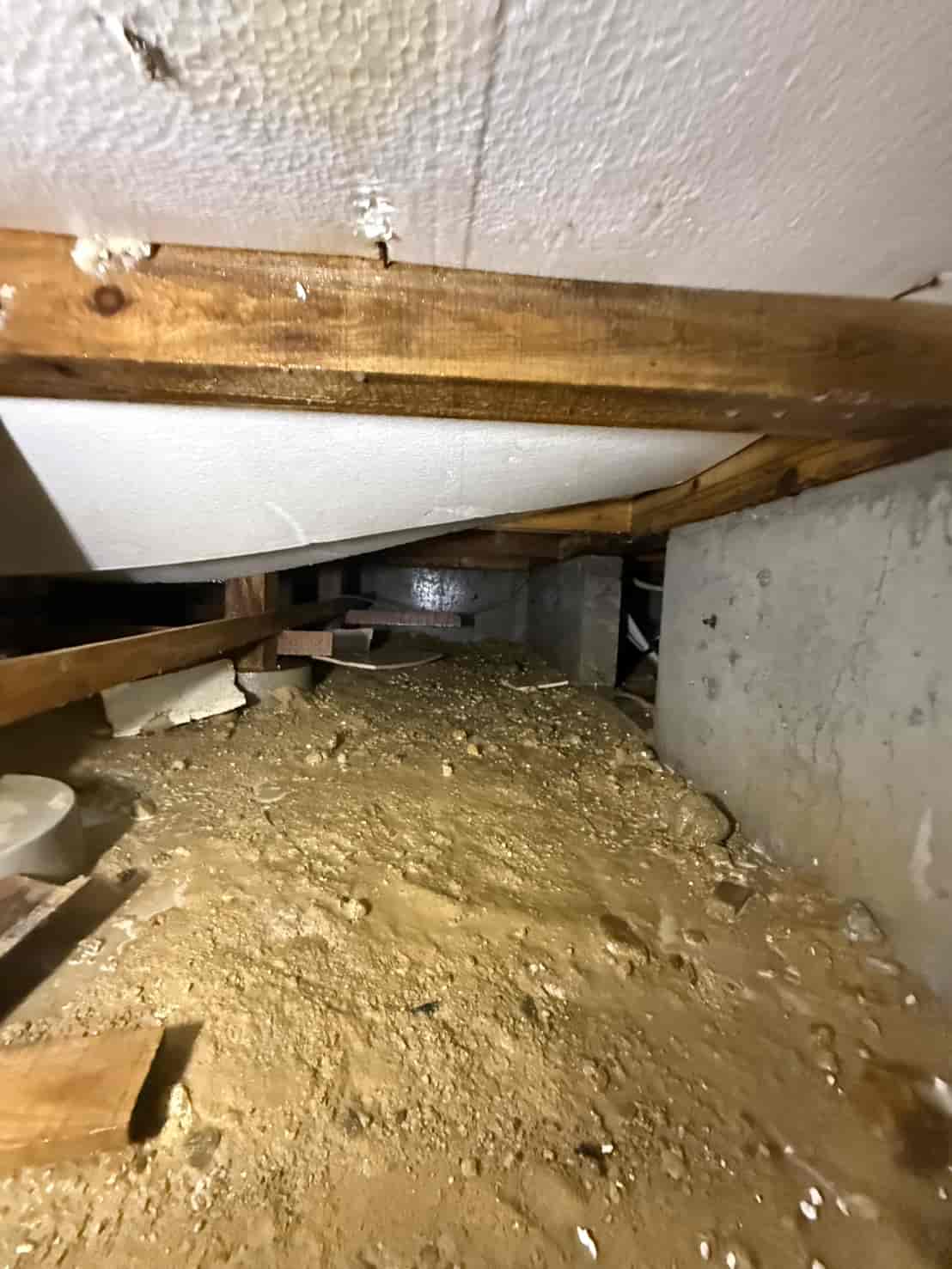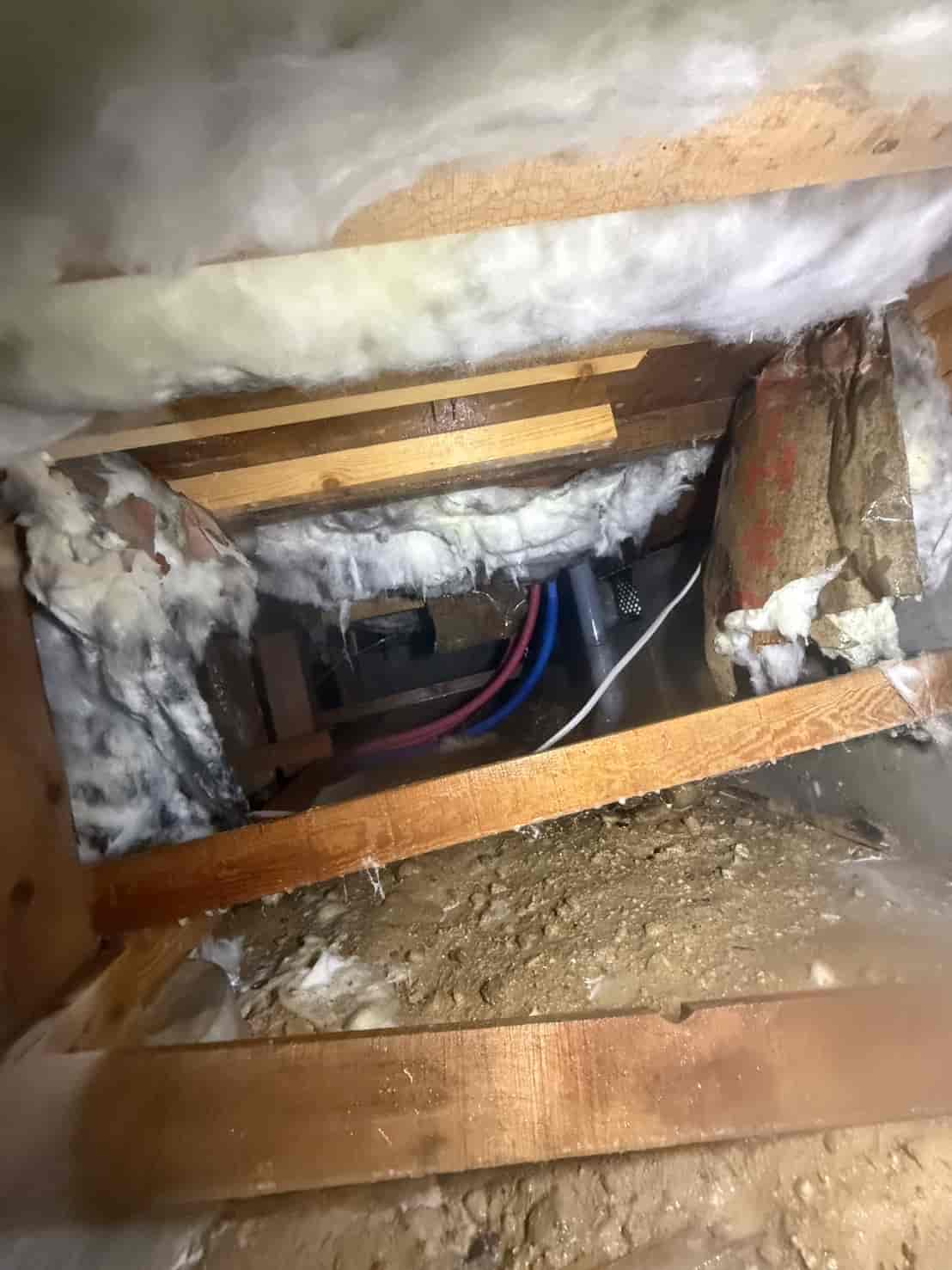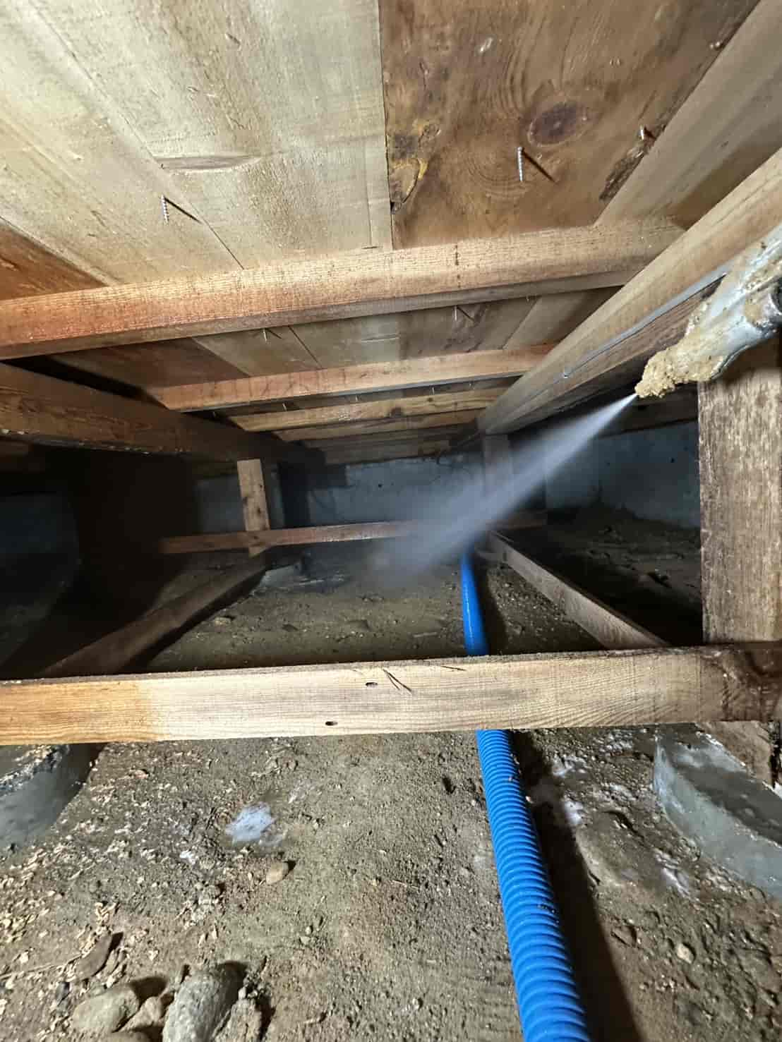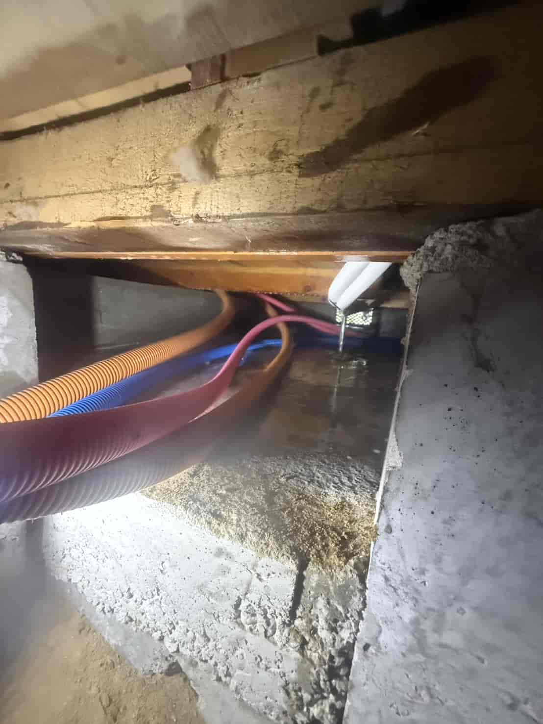 【対応】被害箇所の木部に穿孔注入処理を行い、内部まで薬剤を行き渡らせて確実に駆除しました。床下の断熱材を一部カットし、見えない部分まで徹底的に処理を実施しました。駆除後は再発防止のための予防消毒も行い、長期的に安心できる環境を整えました。