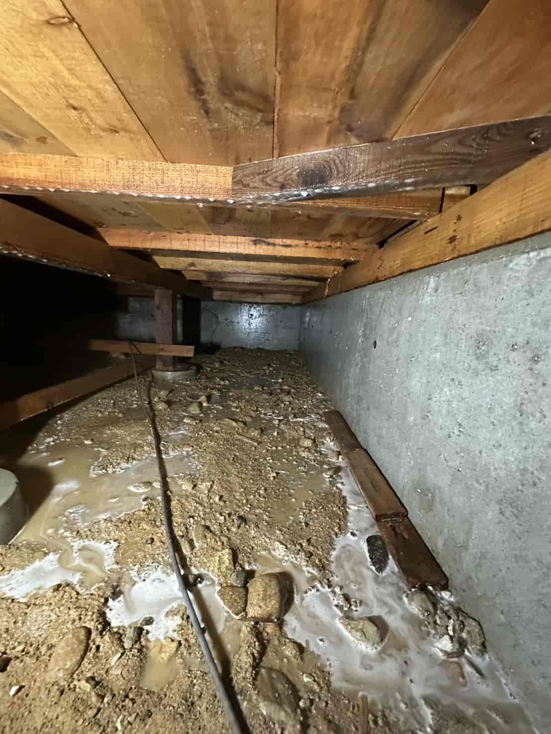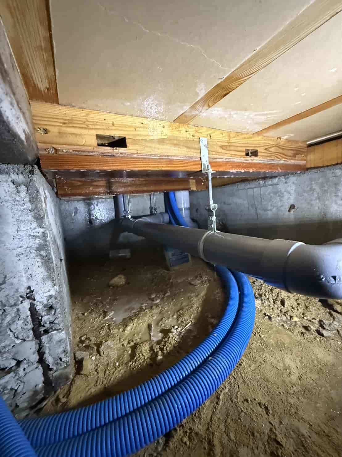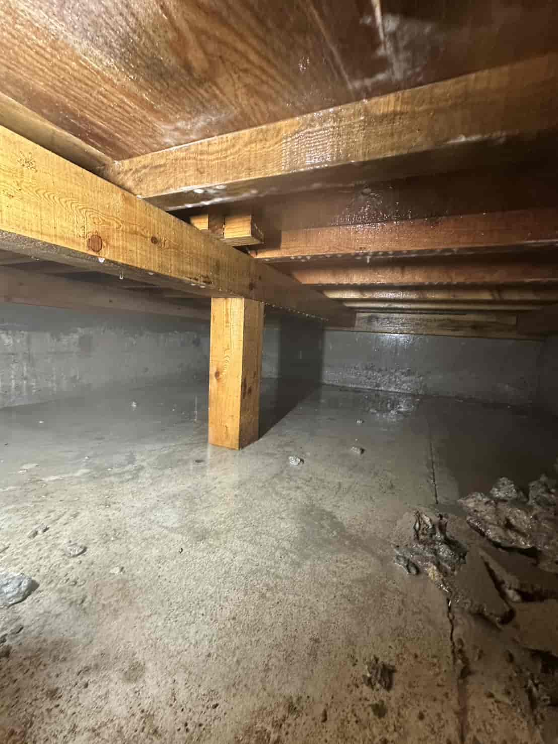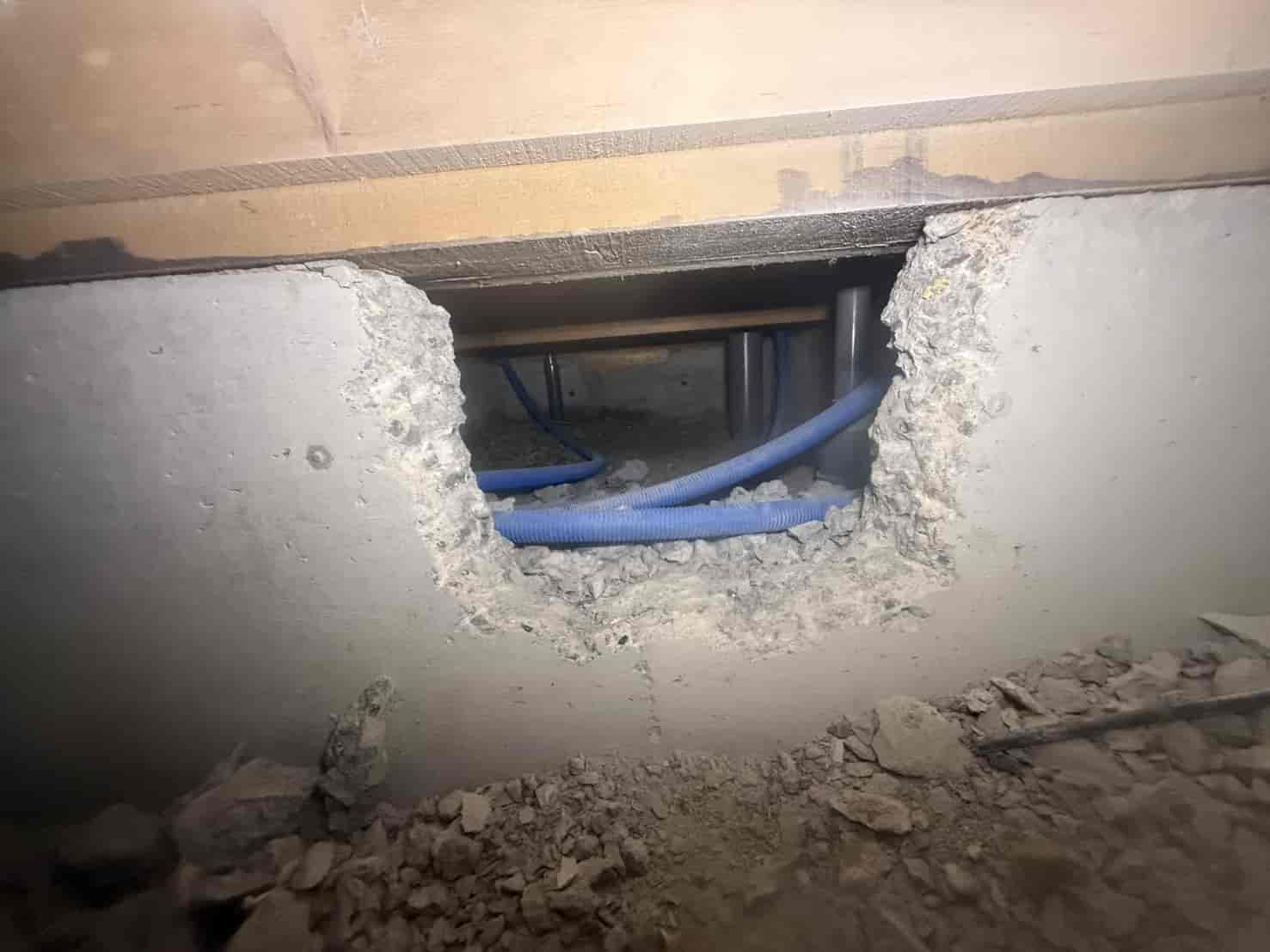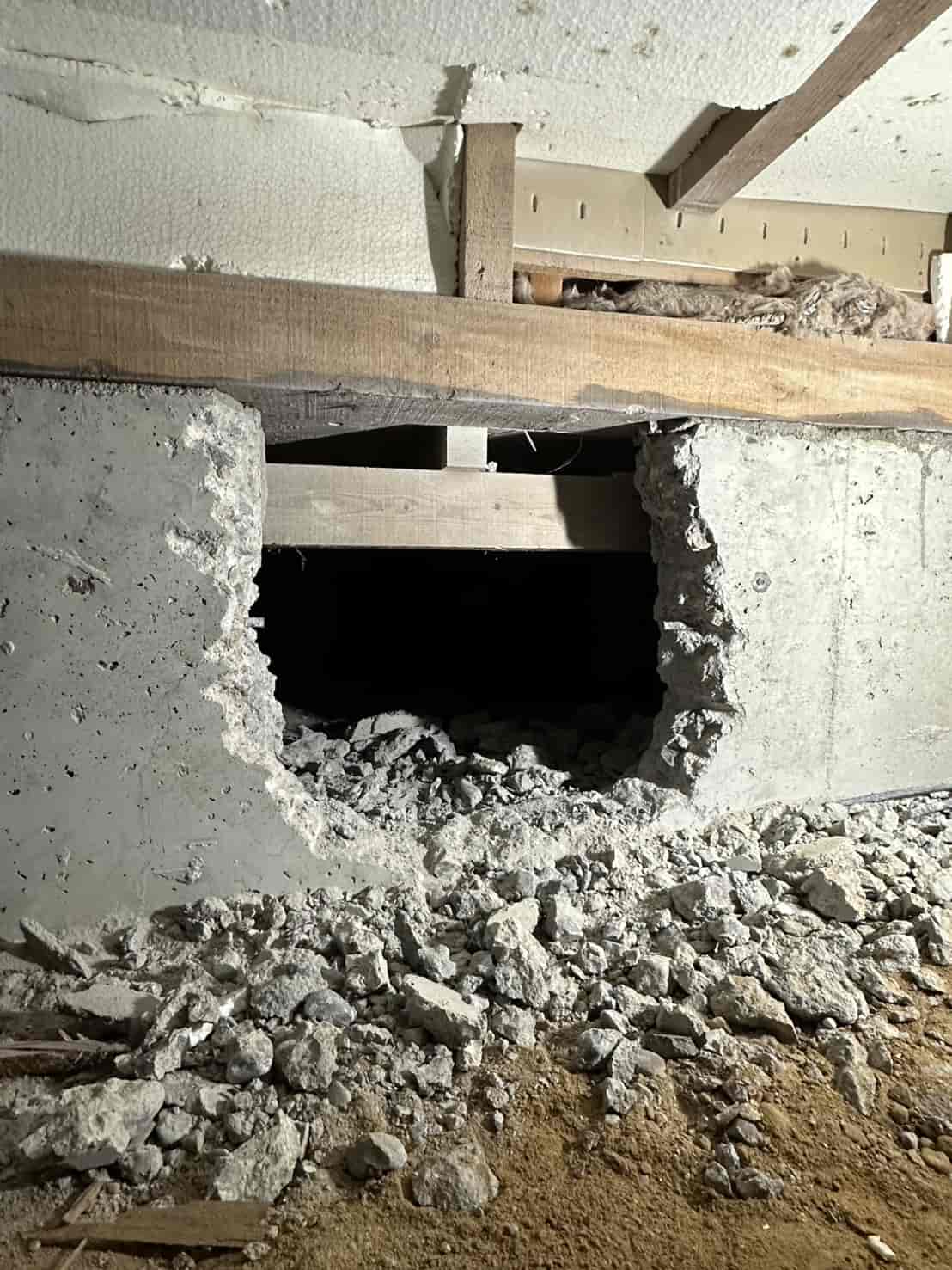 【対応】被害箇所の木部に穿孔注入処理を行い、内部まで薬剤を行き渡らせて確実に駆除しました。床下の断熱材を一部カットし、見えない部分まで徹底的に処理を実施しました。駆除後は再発防止のための予防消毒も行い、長期的に安心できる環境を整えました。
