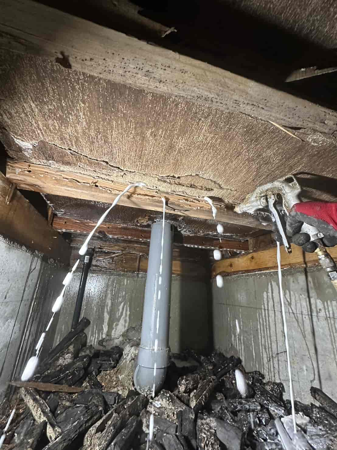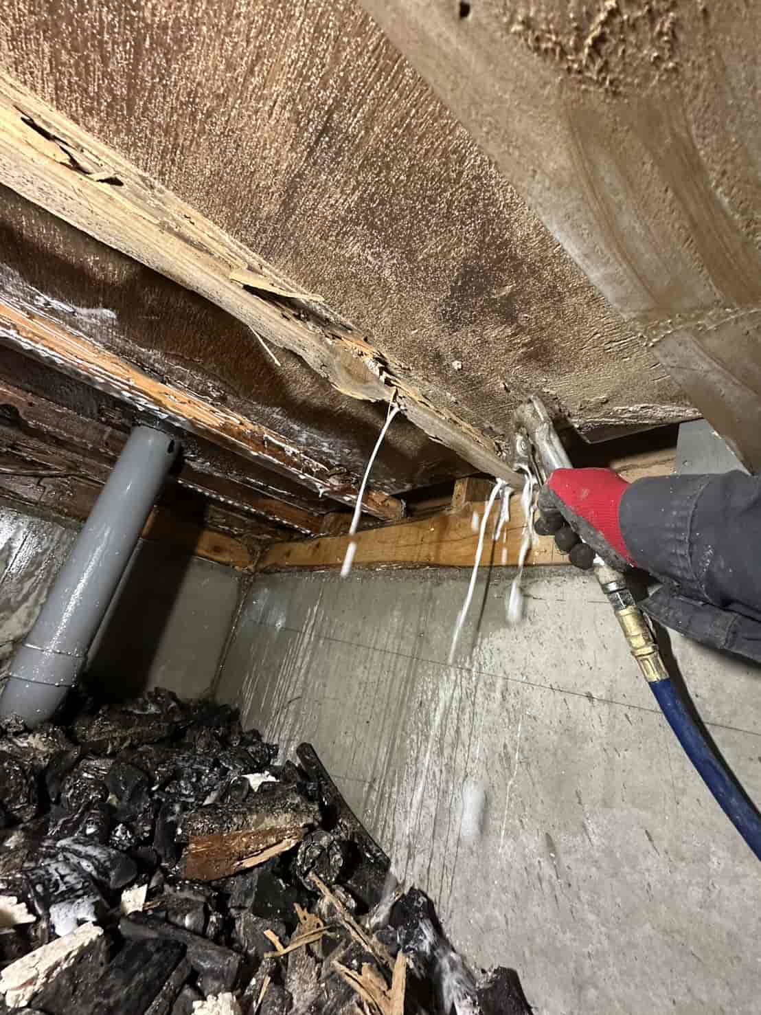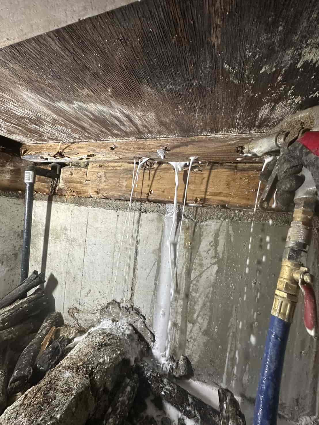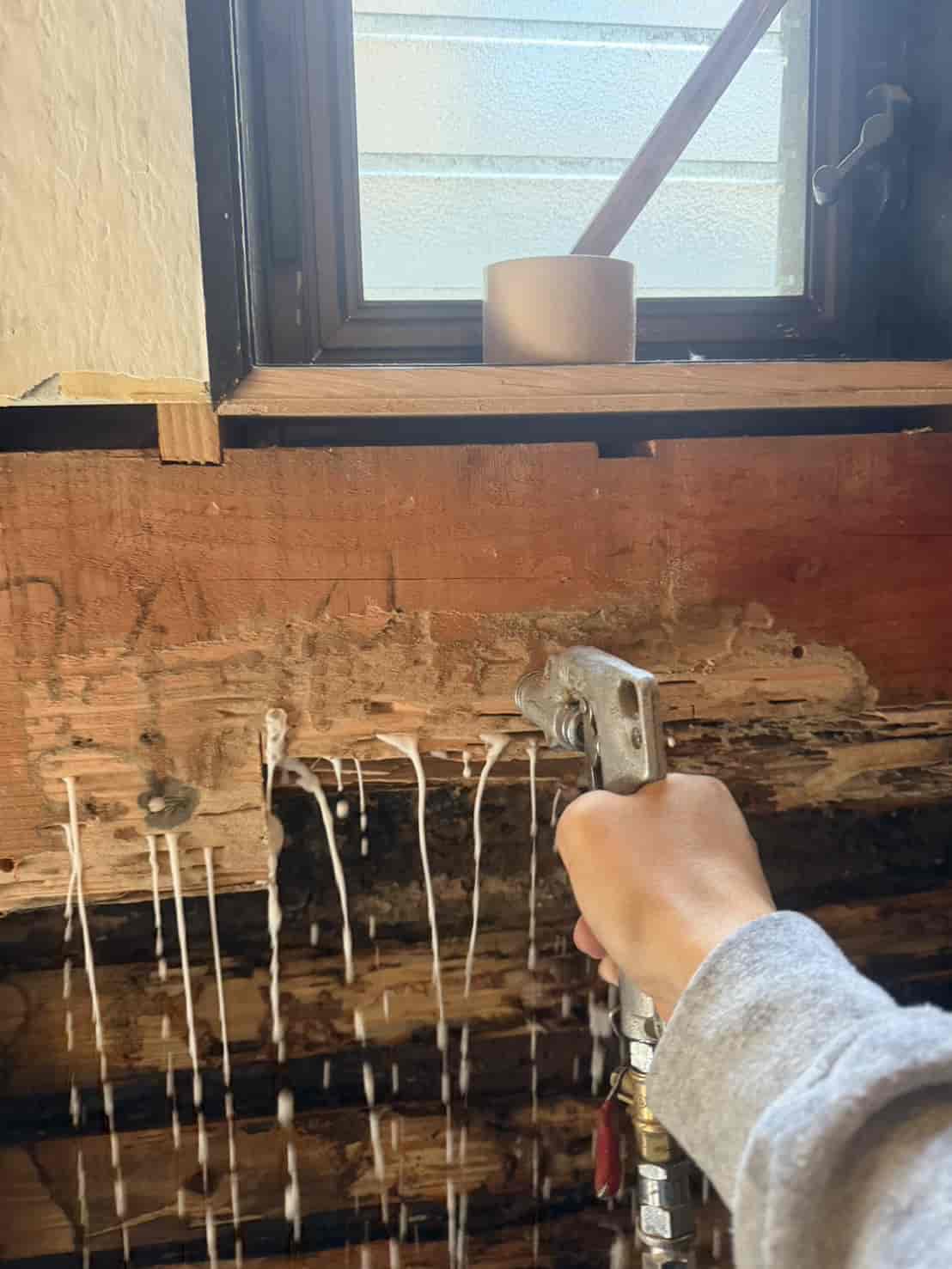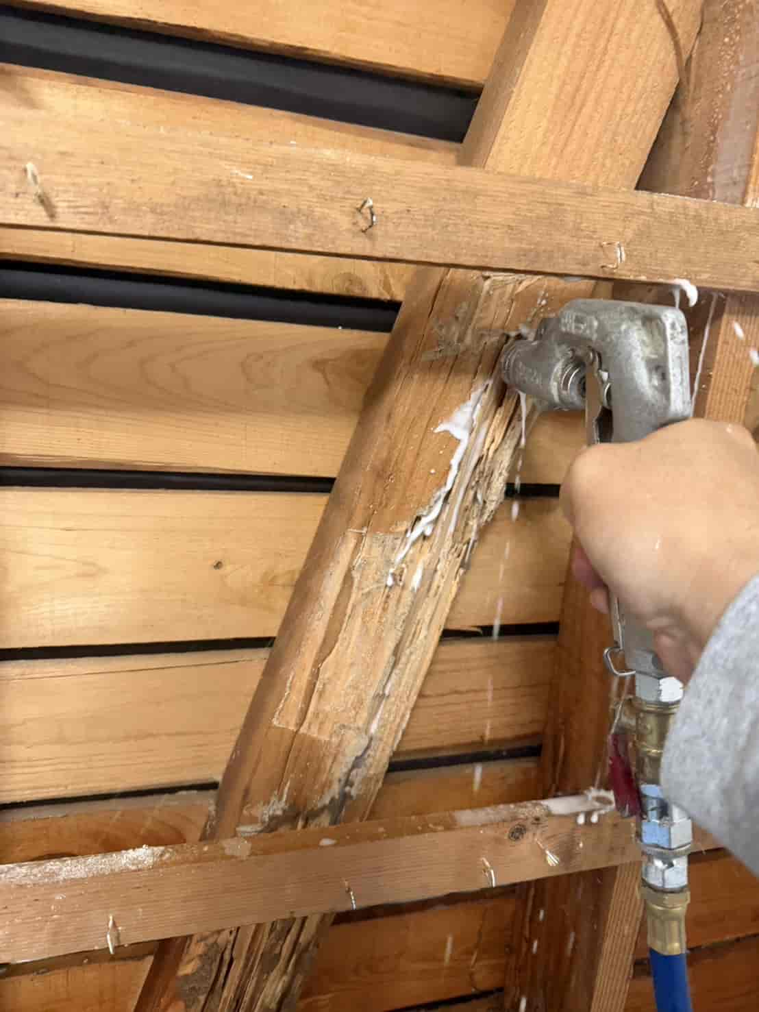 •壁内部の木部・通路・周辺構造材への徹底消毒