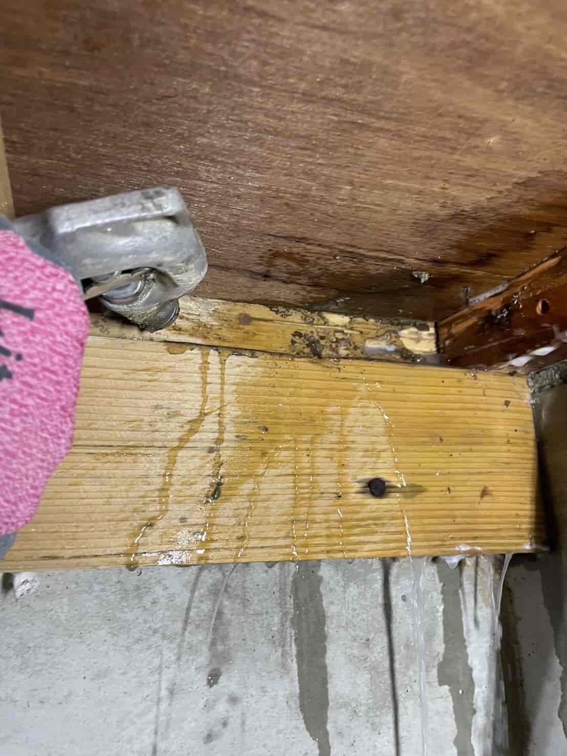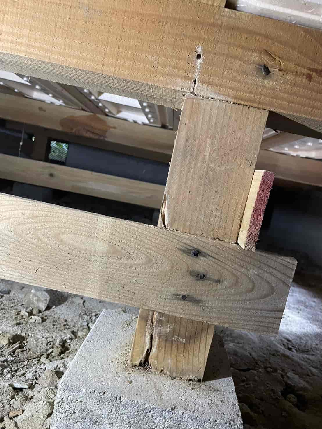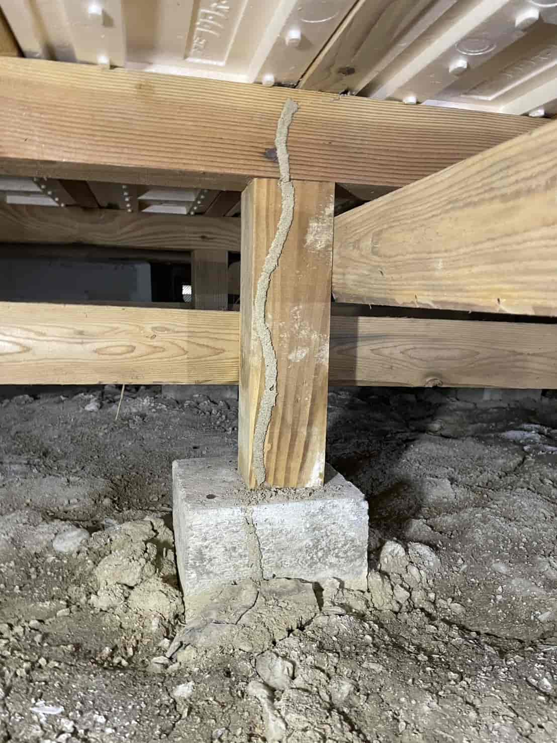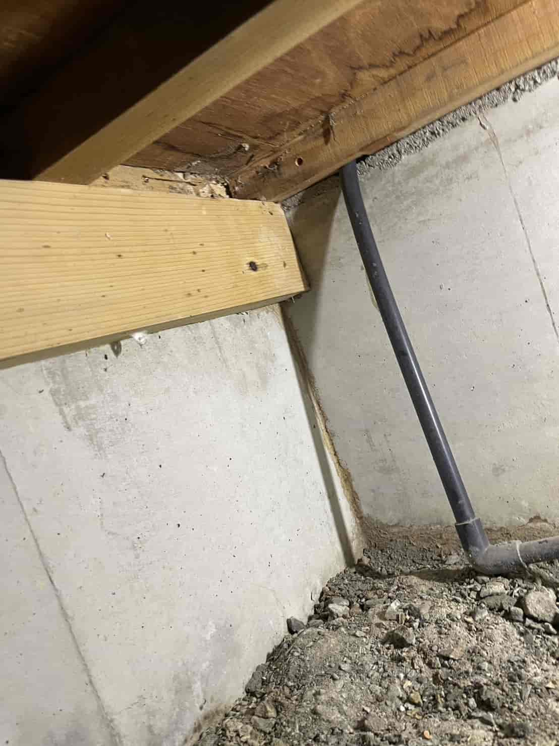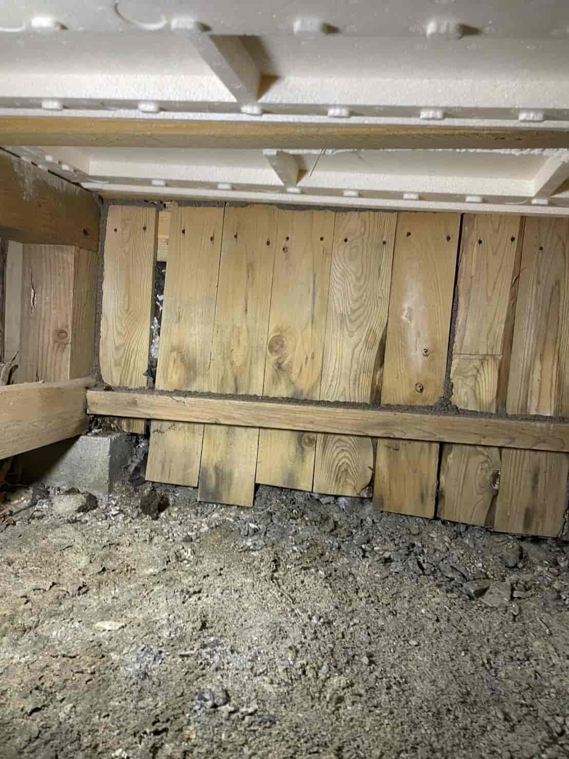 和歌山県岩出市のお客様より玄関の框部分の木が空洞になっているとの相談を受け訪問したところ、框部分がシロアリによる被害が確認され、床下にも蟻道や食害が多数確認されました。