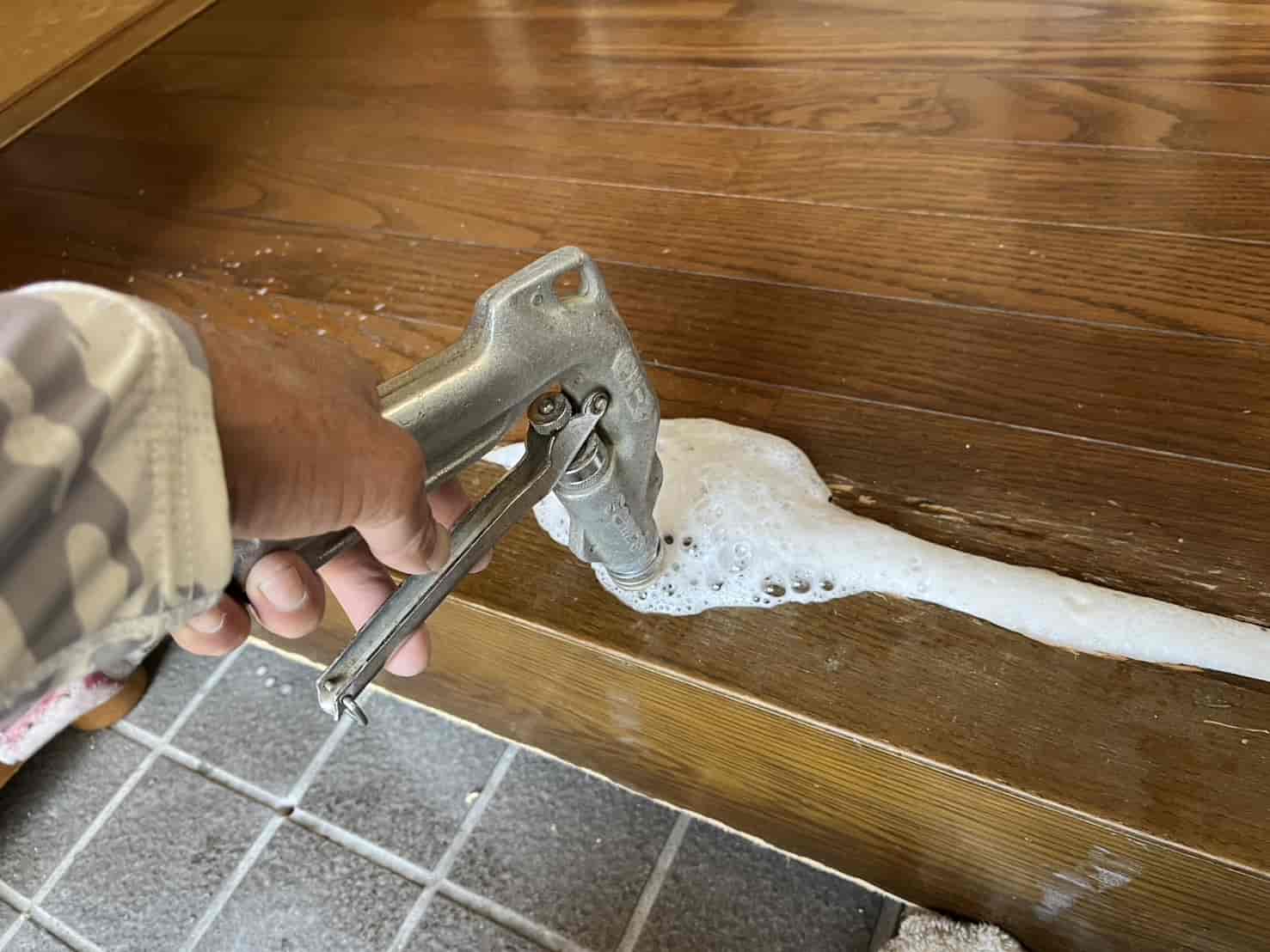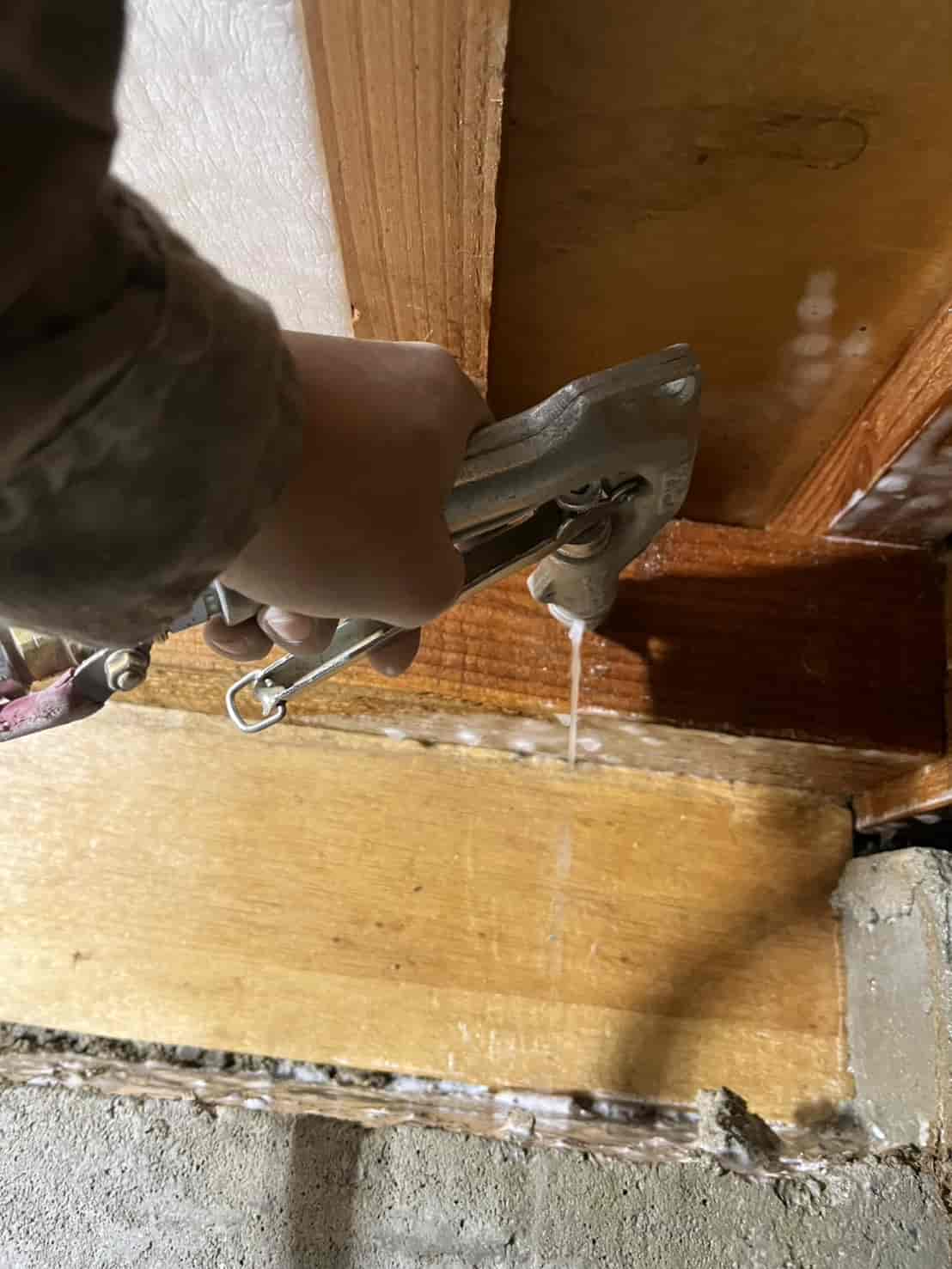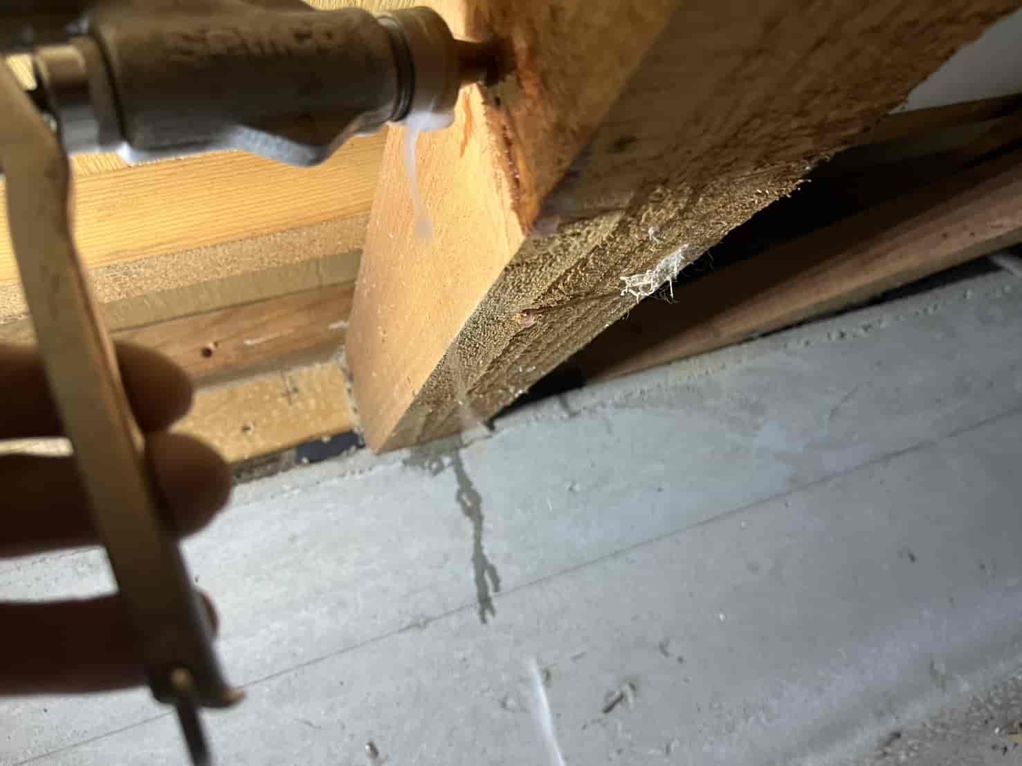 床下木部の穿孔注入: 床下の柱や土台といった家の構造を支える重要な木部に穿孔し、薬剤を奥深くまで注入して徹底的に駆除・予防します。