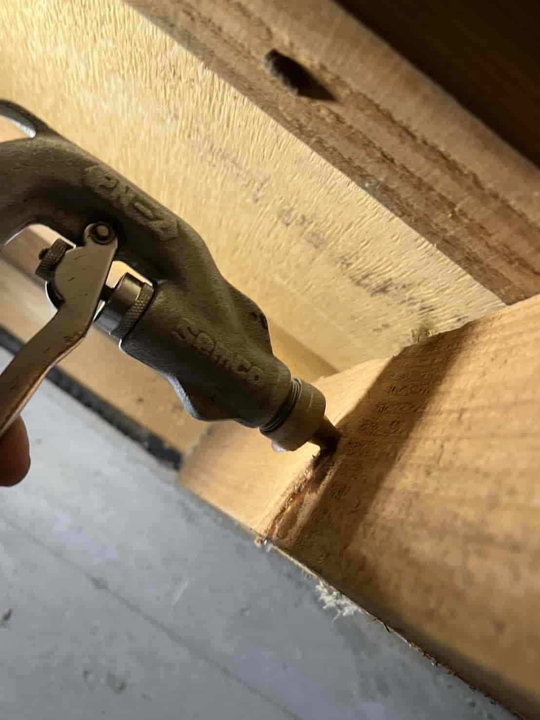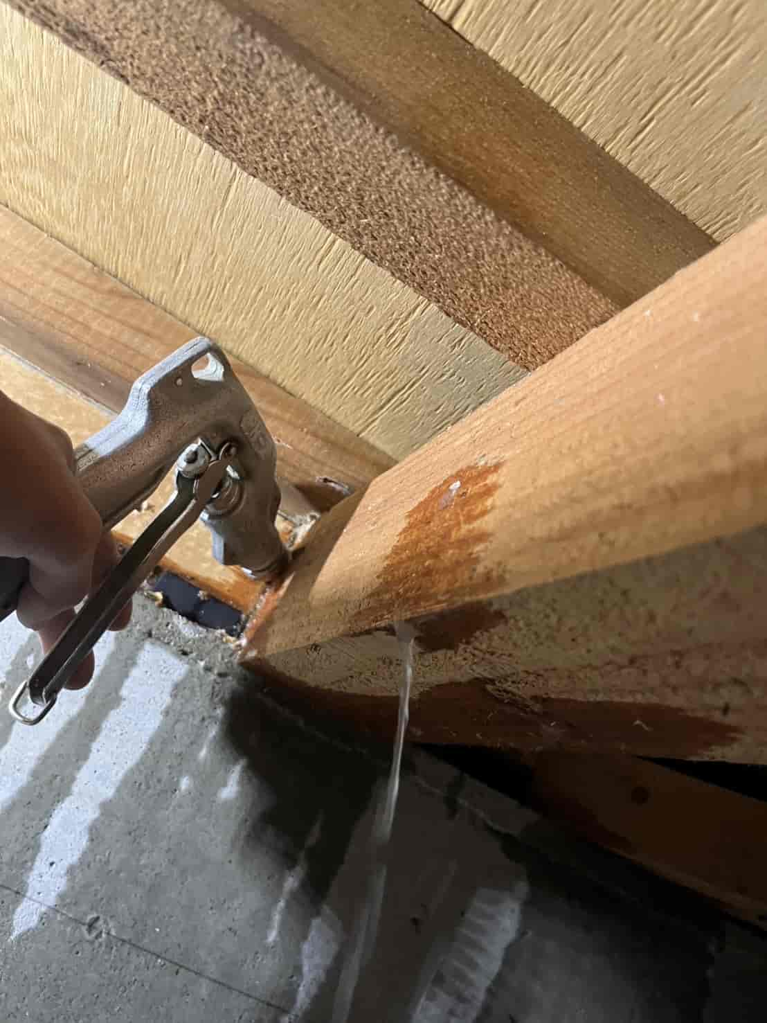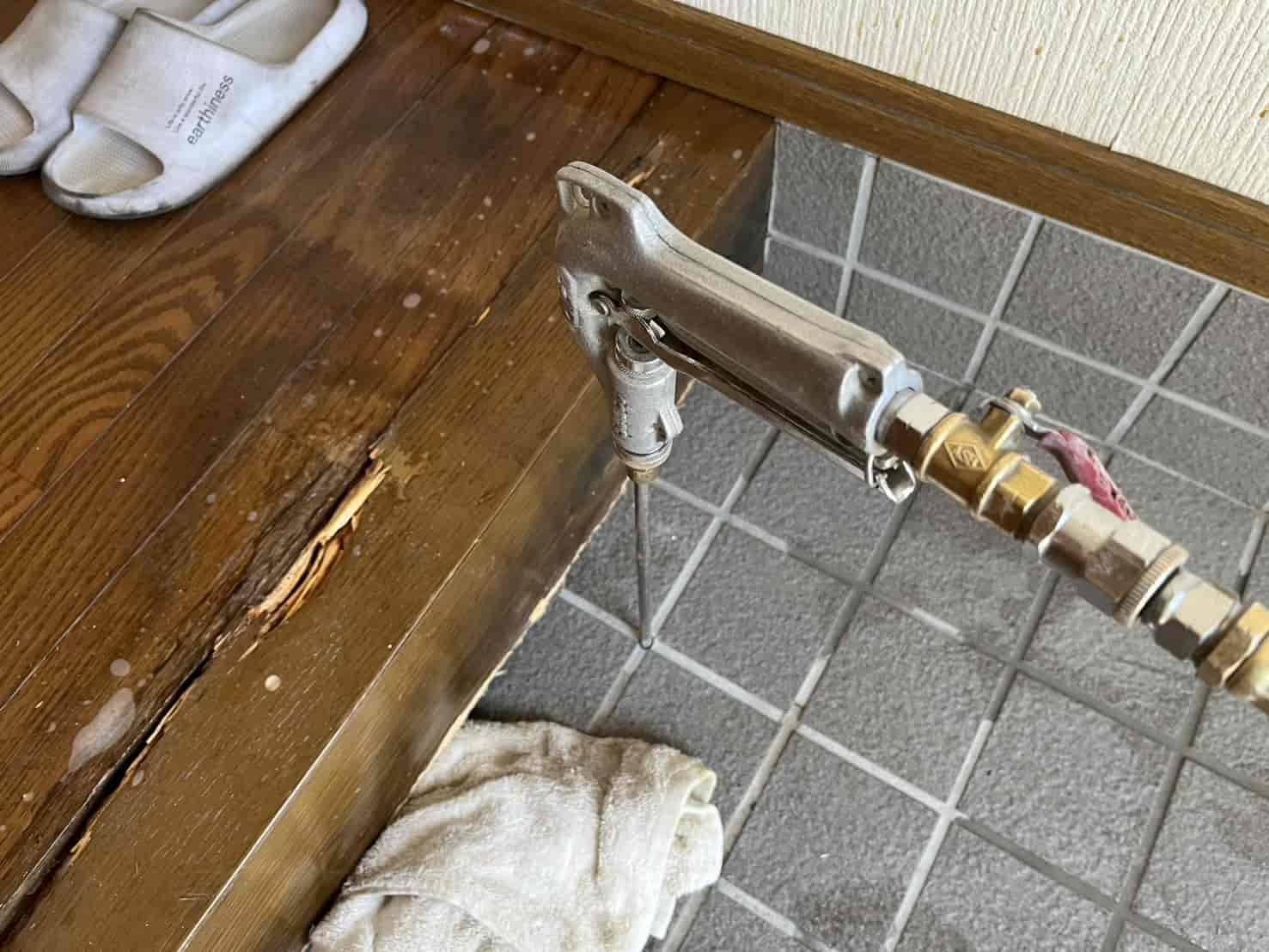 床下木部の穿孔注入: 床下の柱や土台といった家の構造を支える重要な木部に穿孔し、薬剤を奥深くまで注入して徹底的に駆除・予防します。