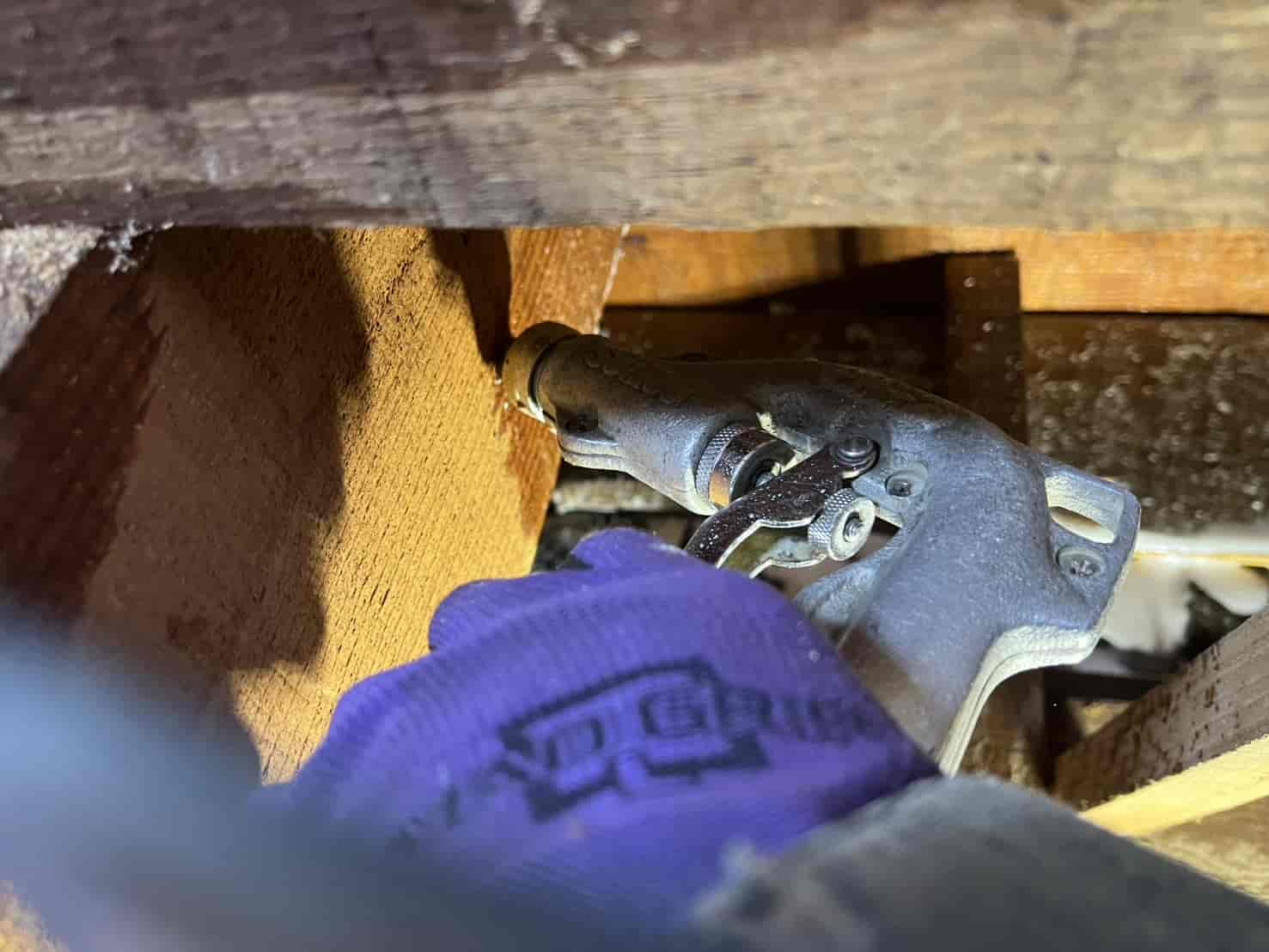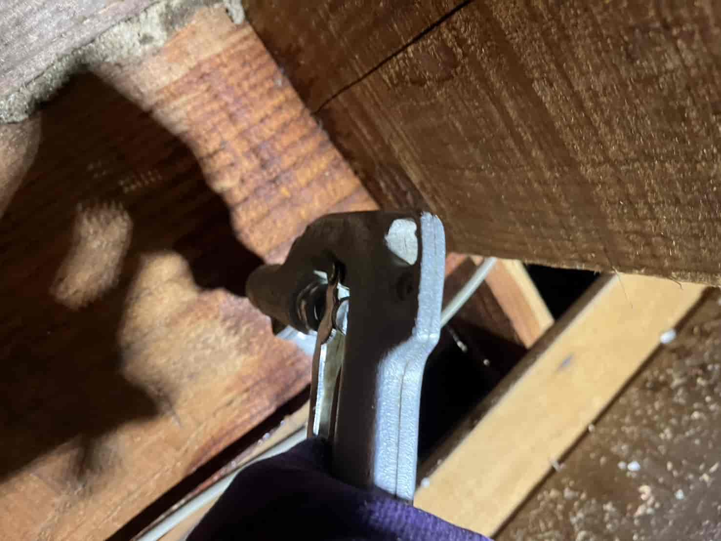 2階天井裏にも蟻道が確認されたため、点検口を利用して内部に薬剤を噴霧。