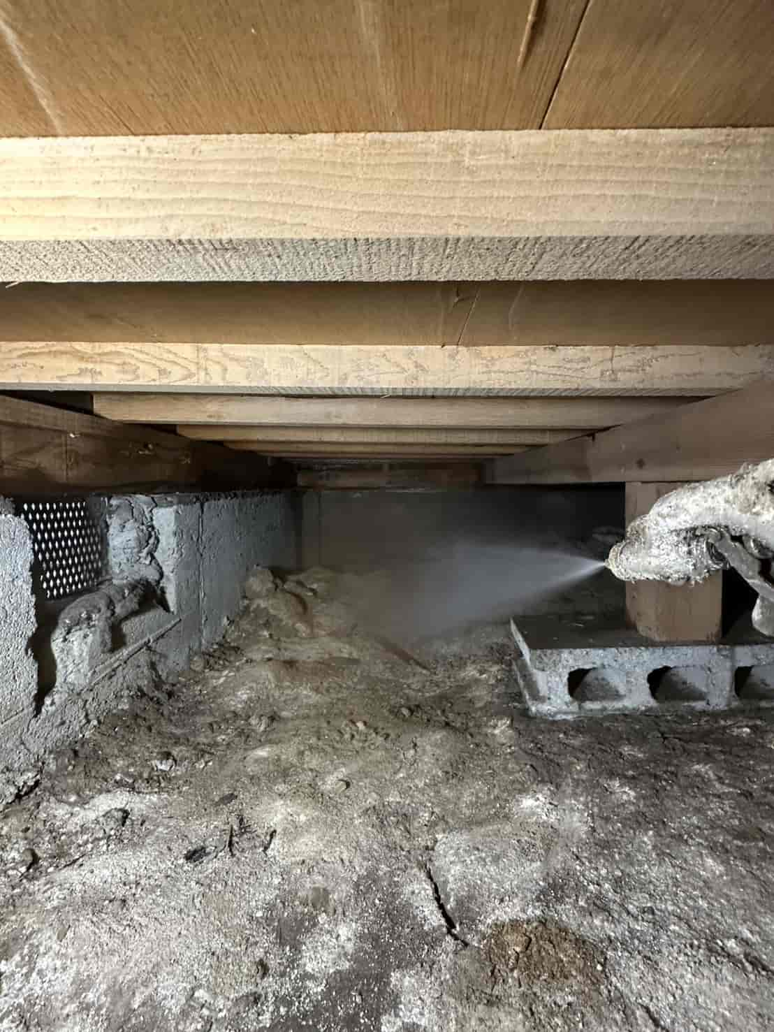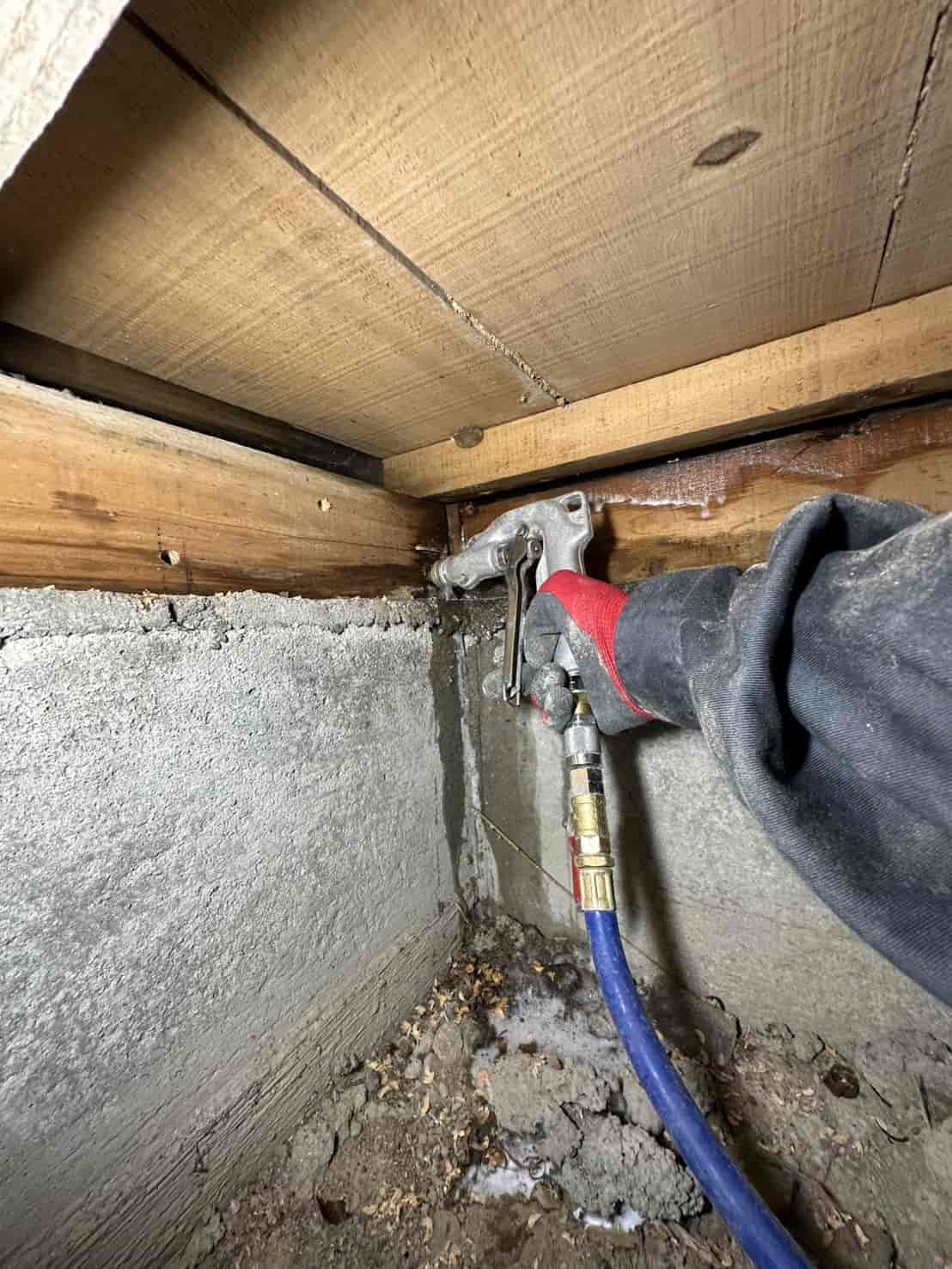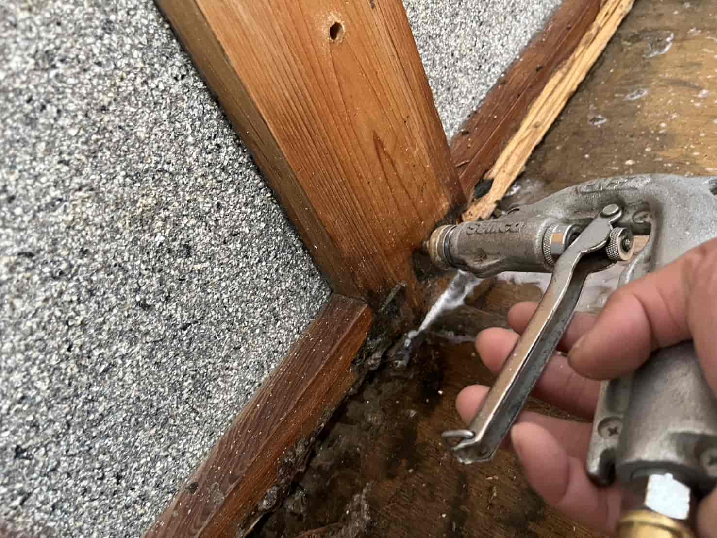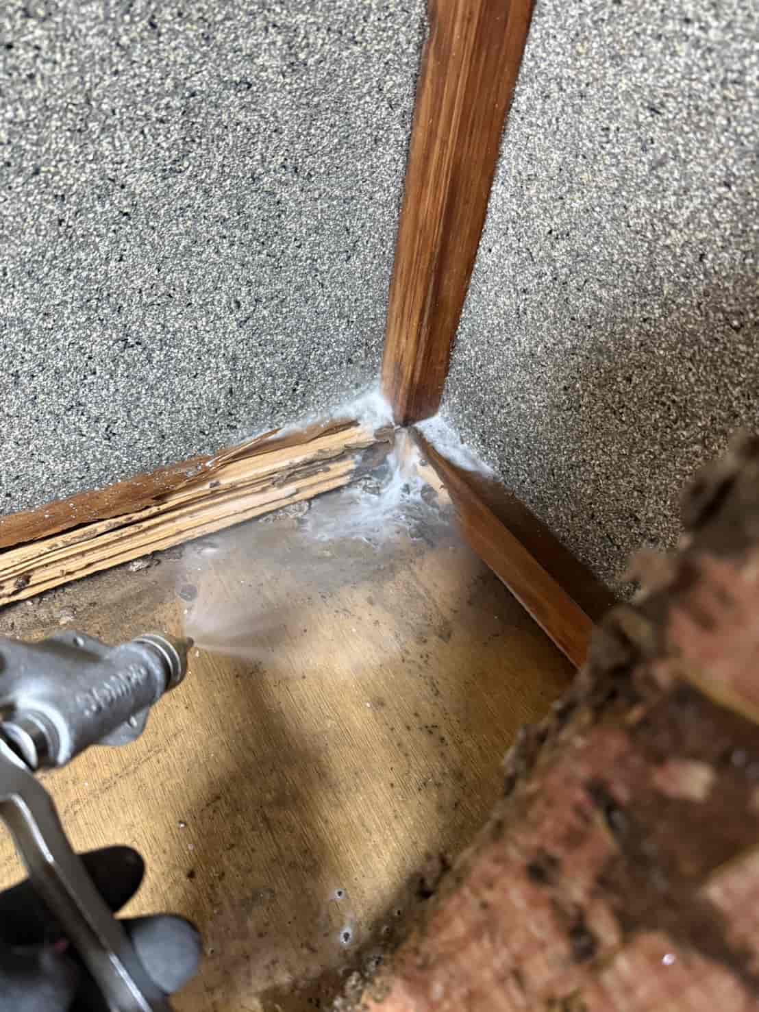 その後、木部表面全体にも薬剤を散布し、白アリの駆除と再発防止を同時に実施しました。