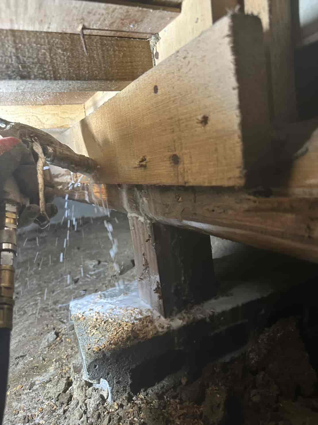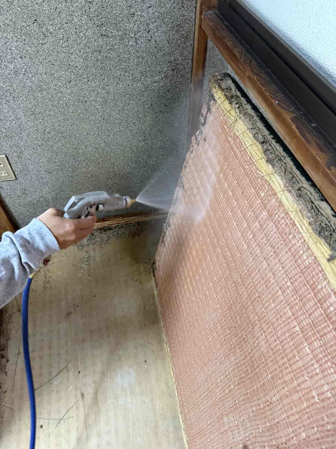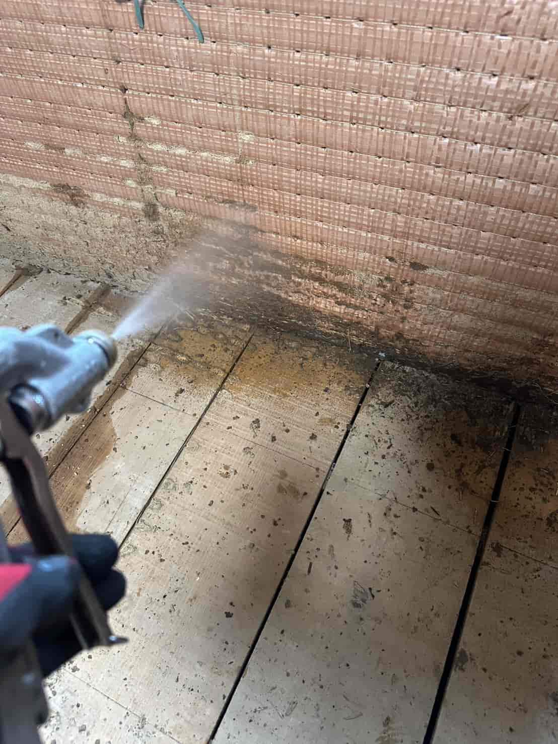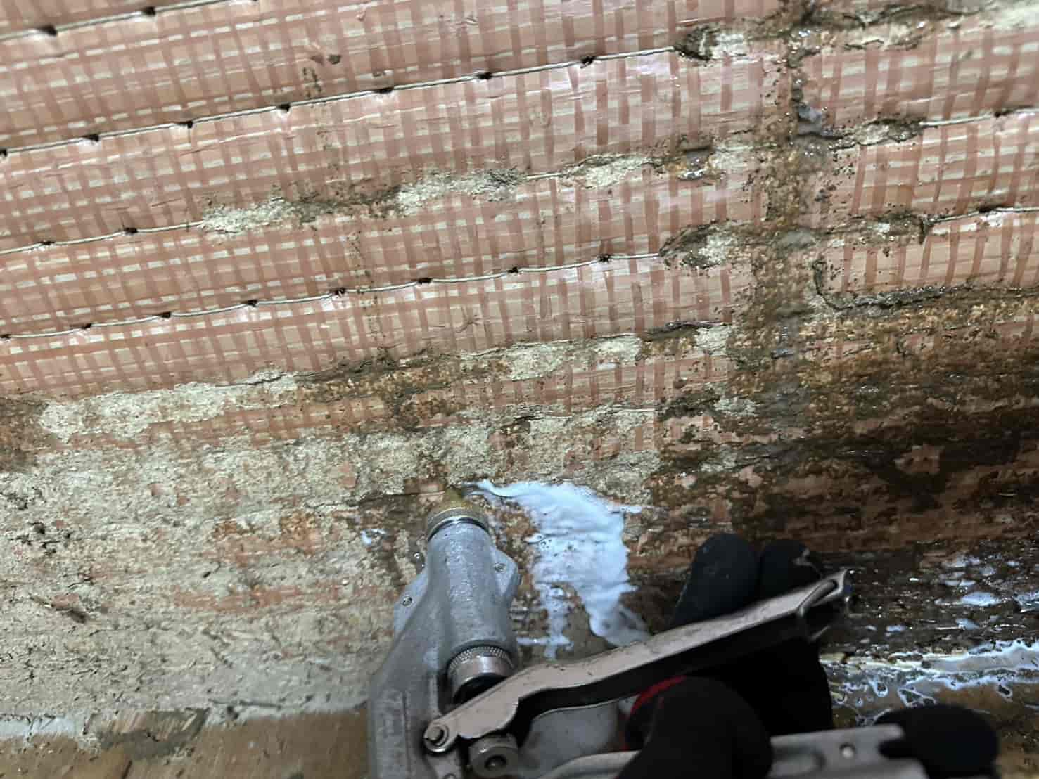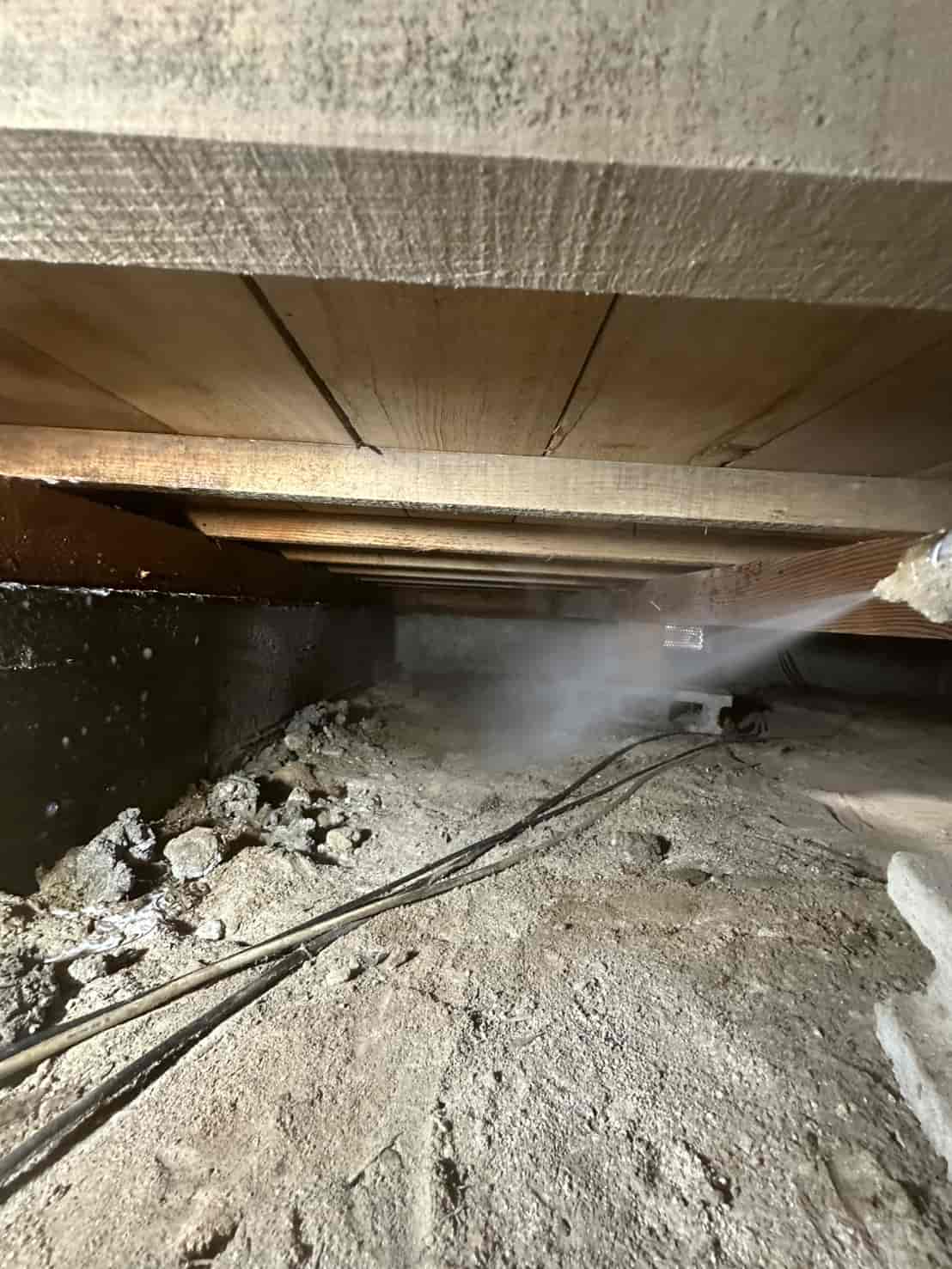 その後、木部表面全体にも薬剤を散布し、白アリの駆除と再発防止を同時に実施しました。