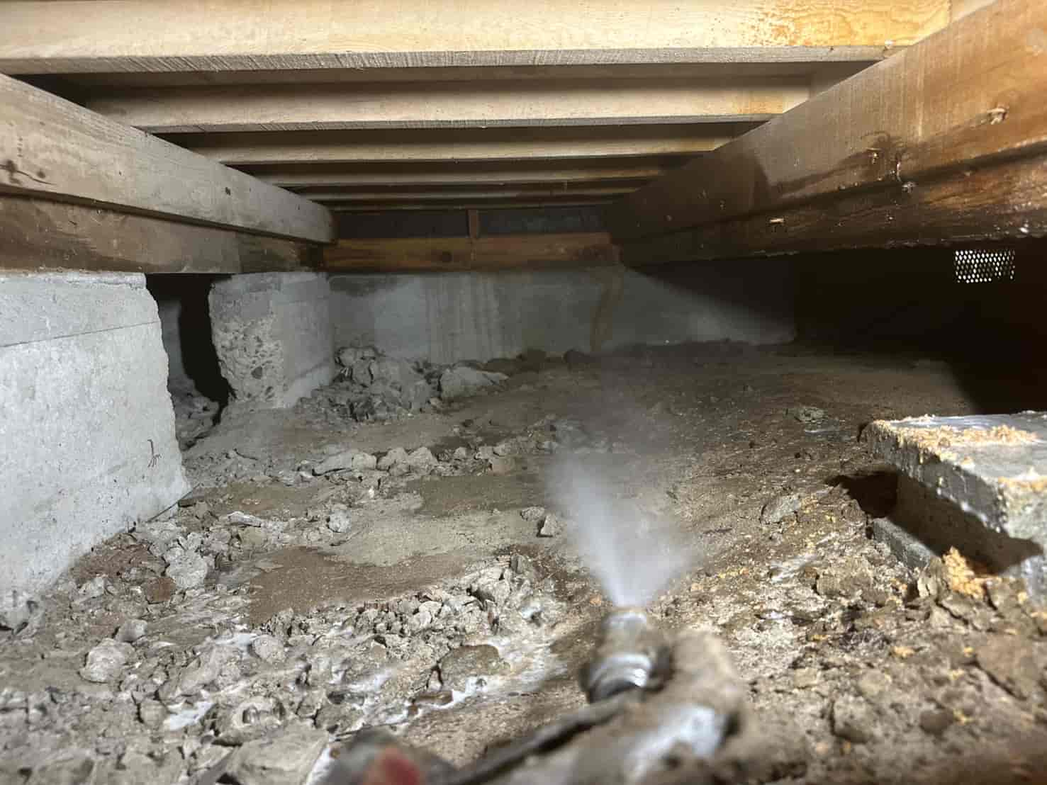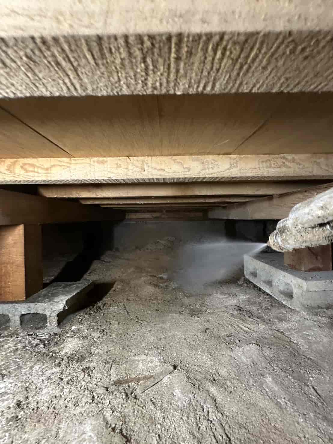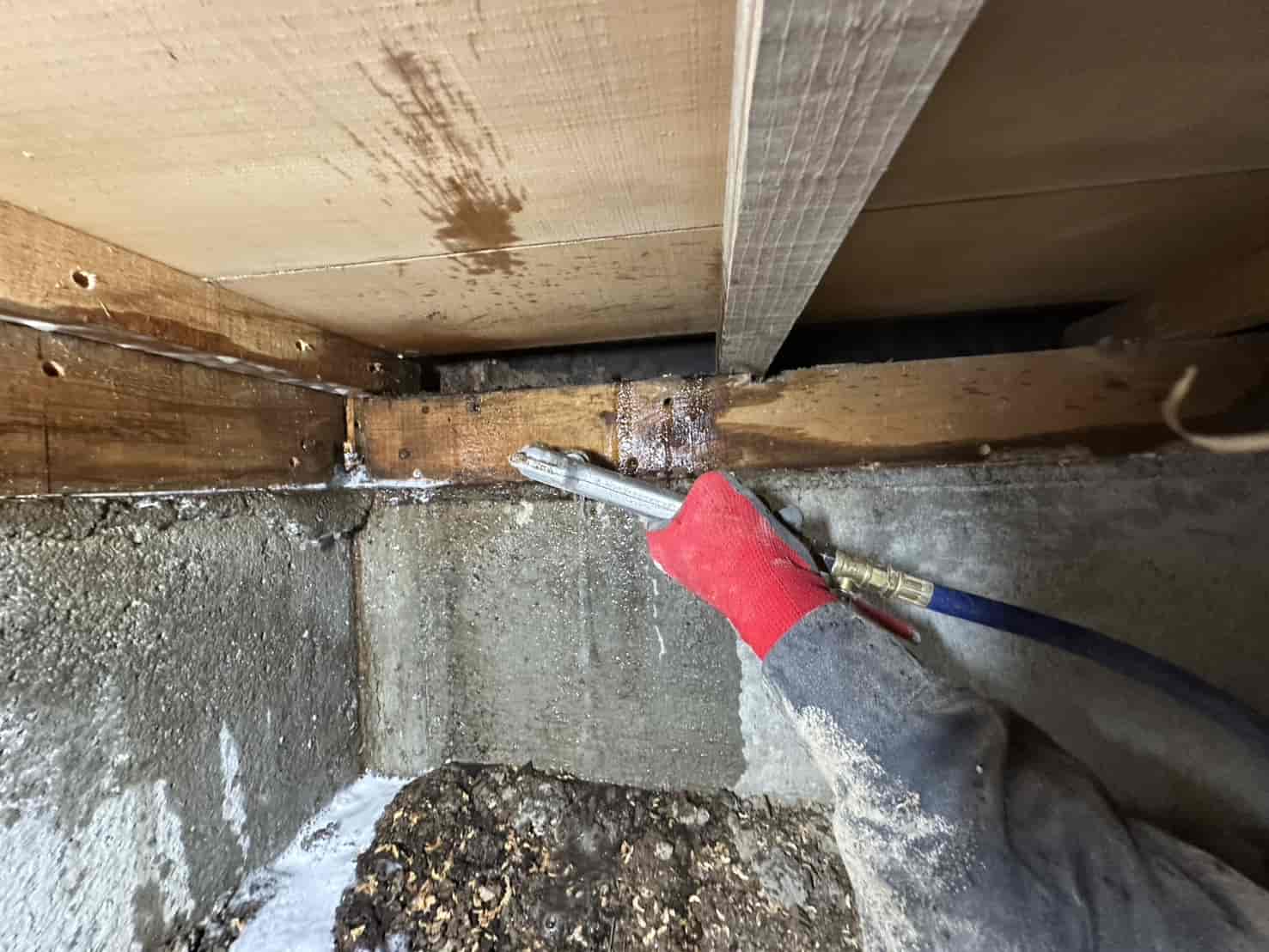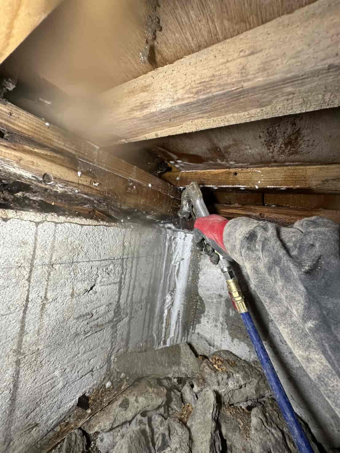 その後、木部表面全体にも薬剤を散布し、白アリの駆除と再発防止を同時に実施しました。