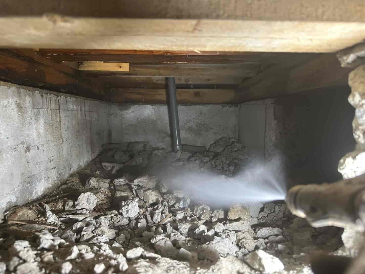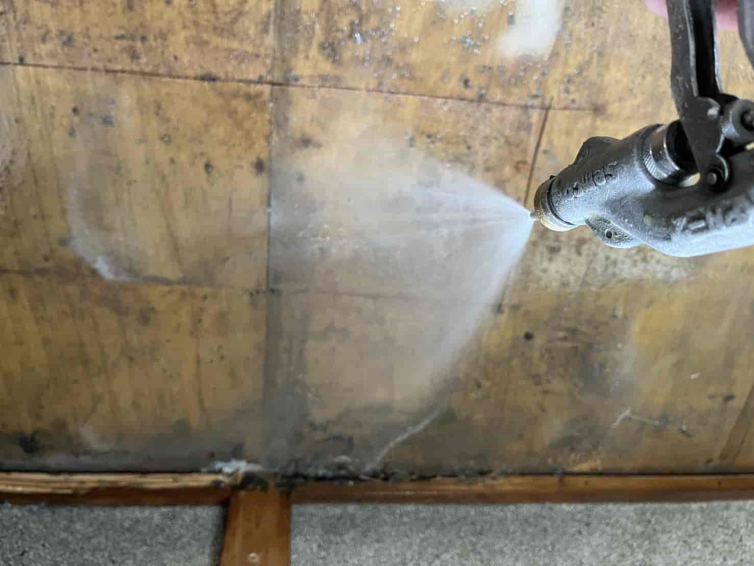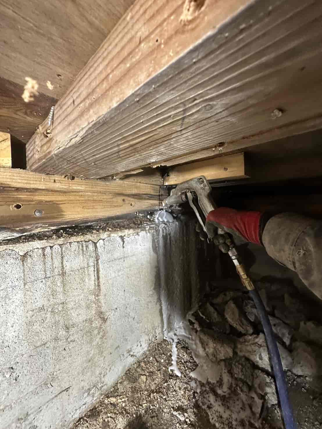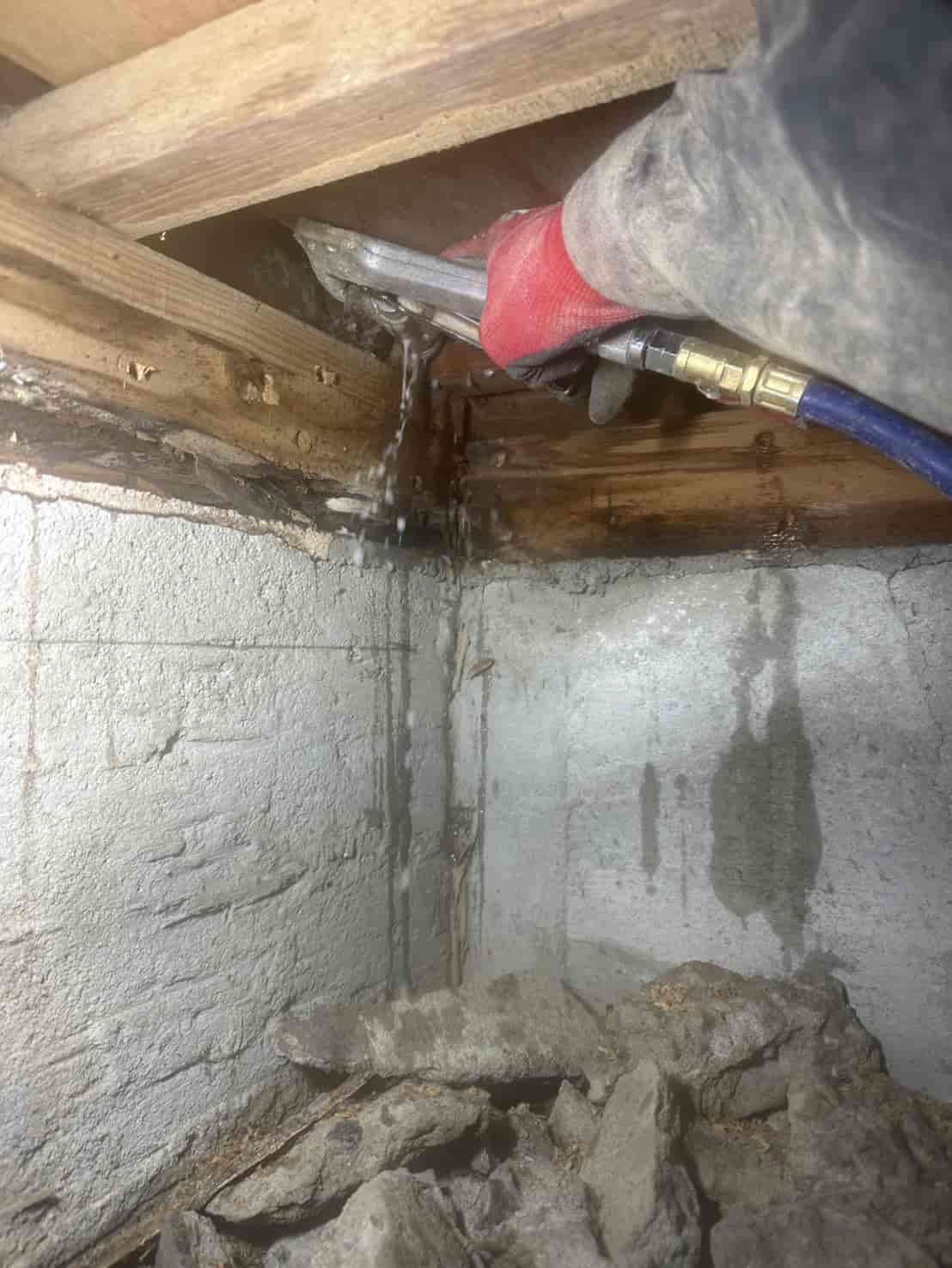 その後、木部表面全体にも薬剤を散布し、白アリの駆除と再発防止を同時に実施しました。