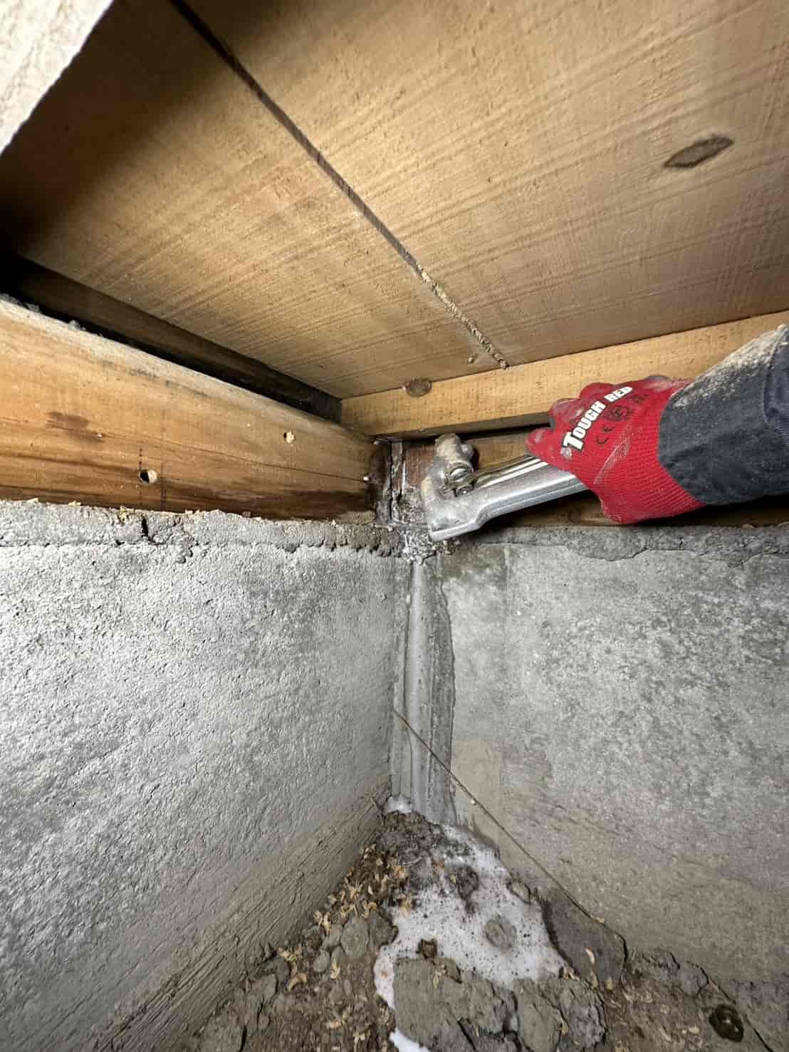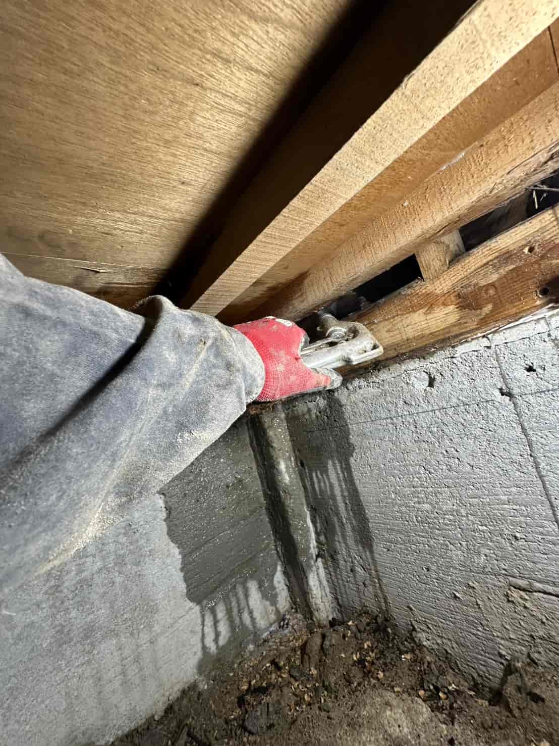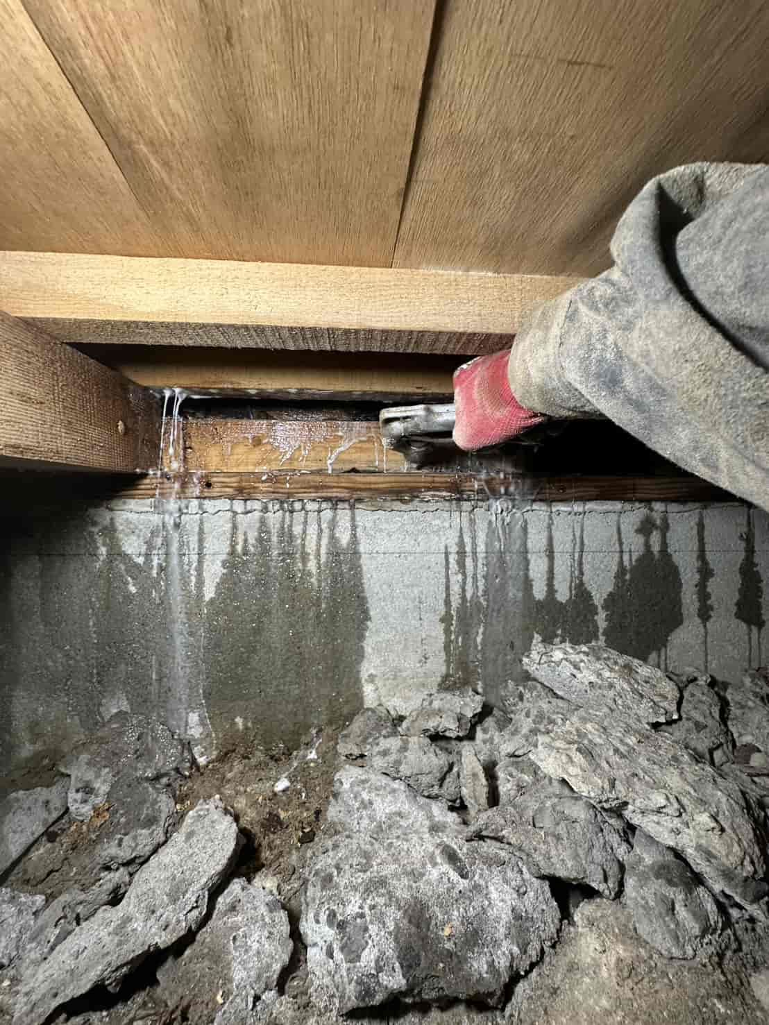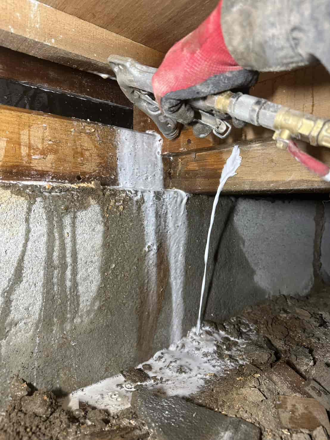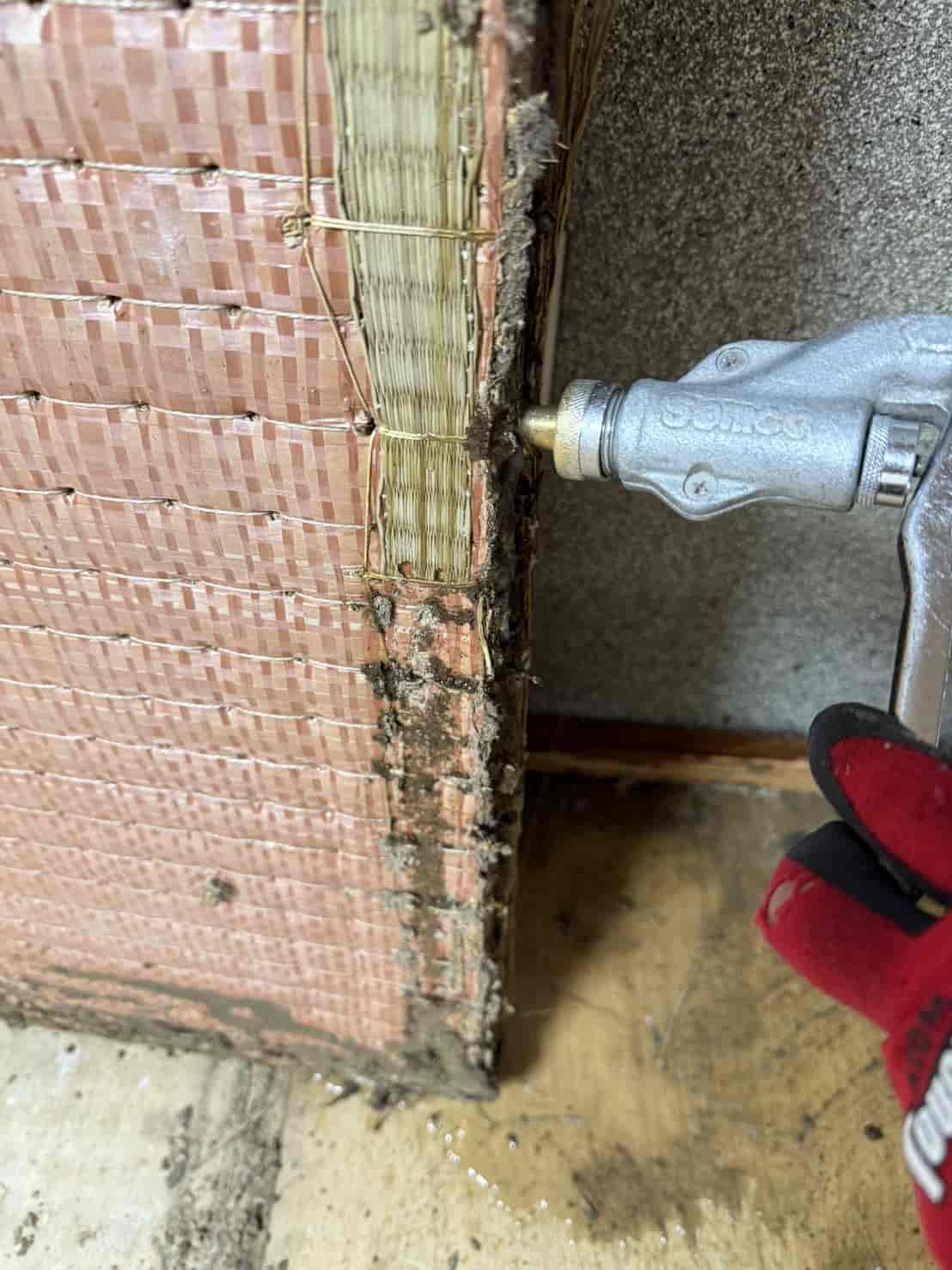 床下の主要な構造木部に細かい穴(穿孔)を開け、内部まで薬剤を圧入。