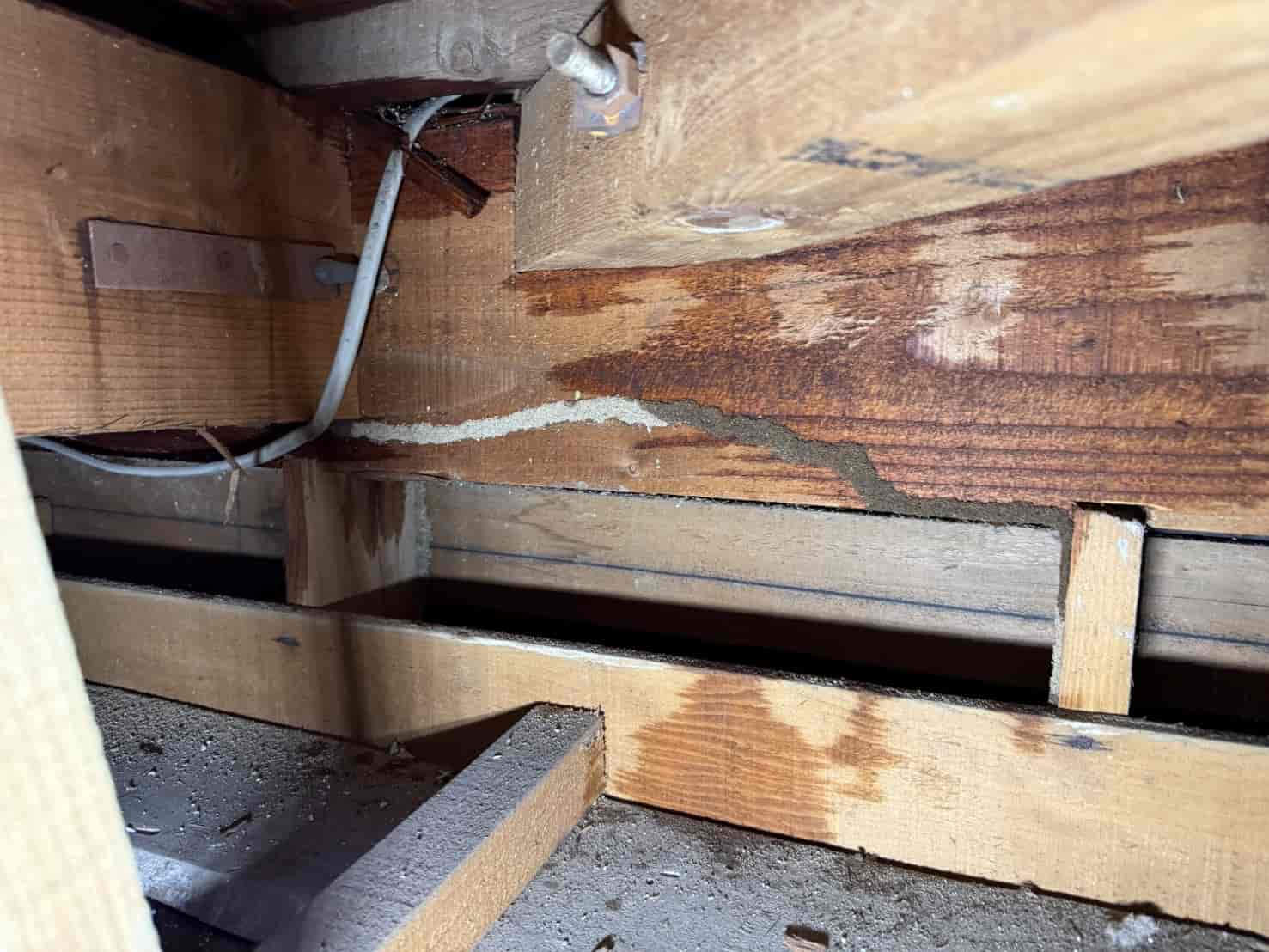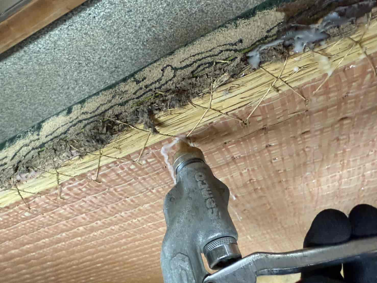 イエシロアリは湿気を好み、床下から壁・柱を伝って上階へ被害を広げる特徴があるため、今回は2階部分まで消毒が必要な非常に注意すべき案件でした。