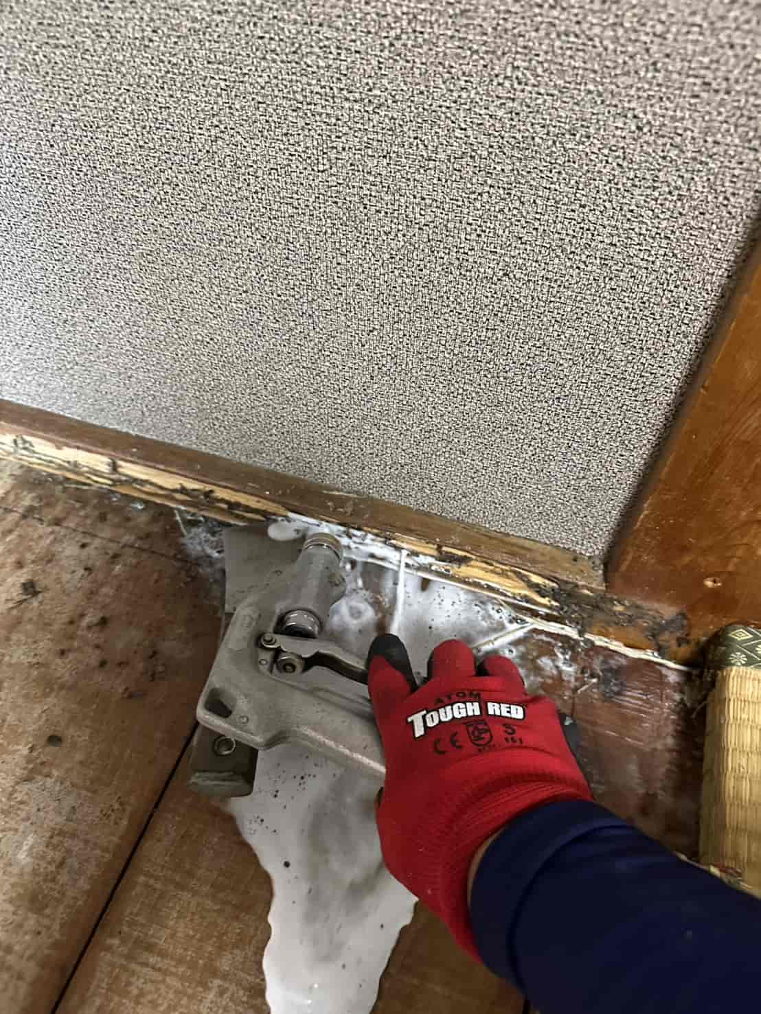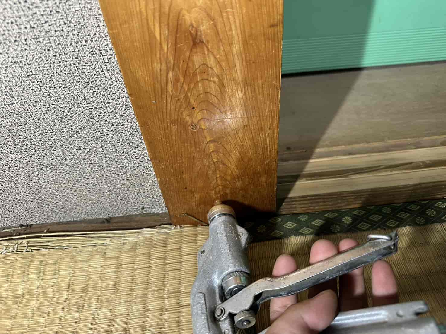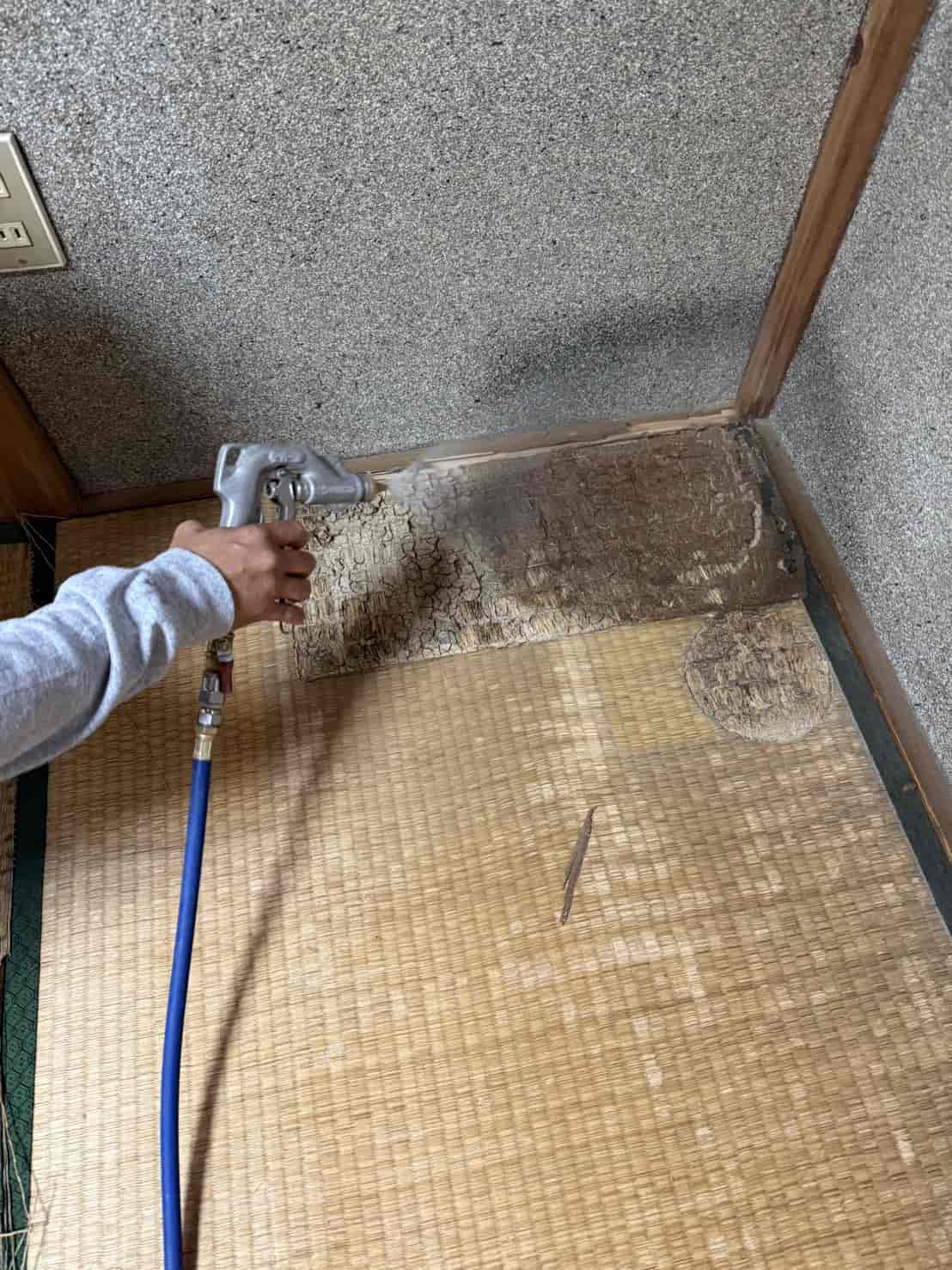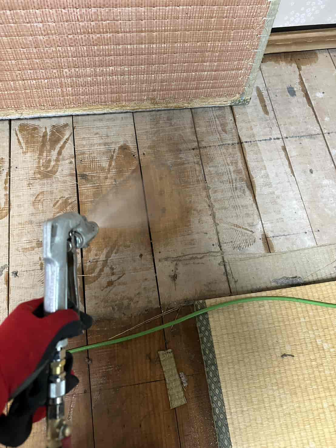 被害のあった2階和室では、畳を一時的に上げ、座板部分の被害箇所を切除。