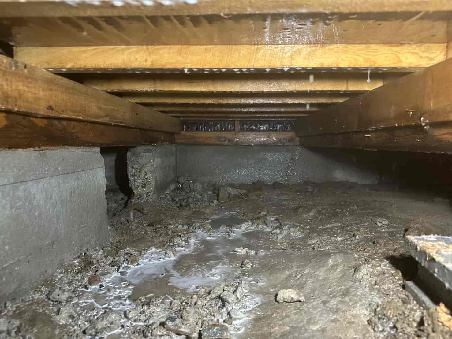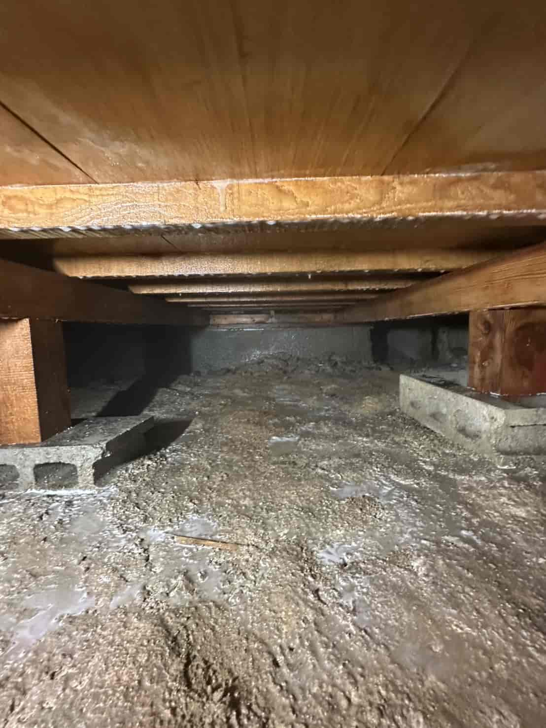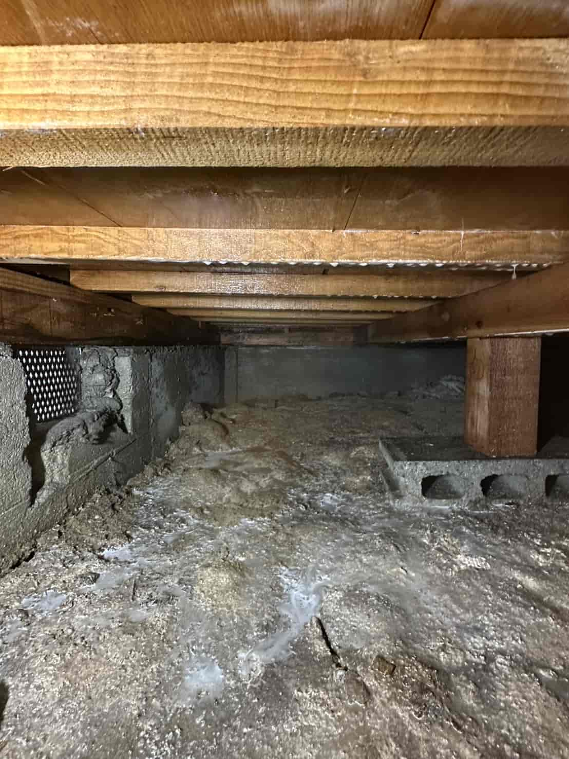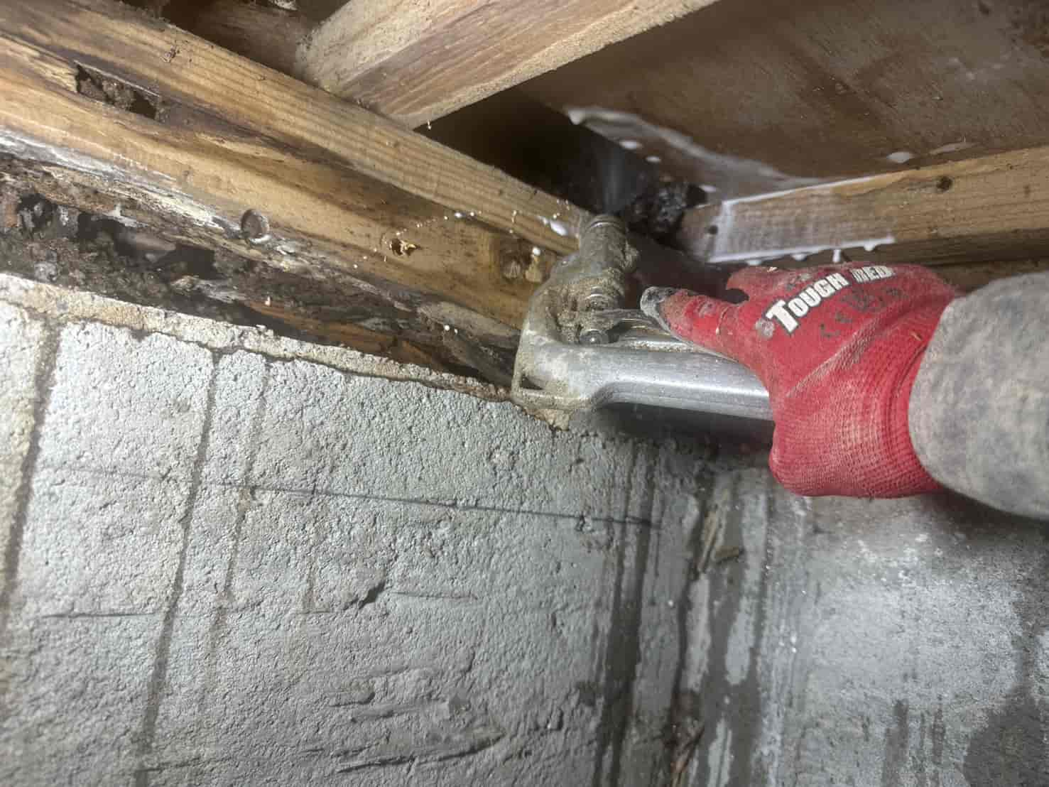 まずは床下から点検を行い、束柱や大引き、根太などの構造木部を確認しました。