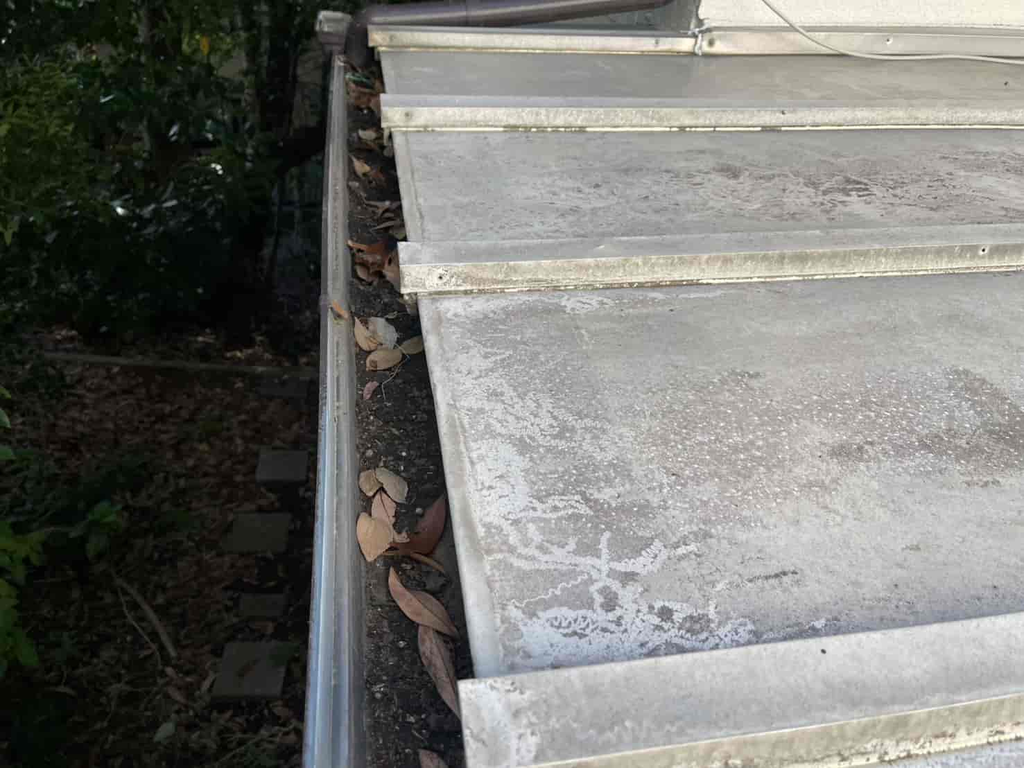 。現地調査を行ったところ、屋根の瓦棒接合部、窓枠まわり、さらに軒先(ハフ)部分からの吹き込みなど、複数箇所からの雨水侵入が確認されました。